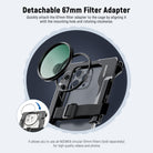 - Adaptador de filtro desmontable de 67 mm : Conecte rápidamente el adaptador de filtro de 67 mm a la carcasa del teléfono alineándolo con el orificio de montaje y girándolo en sentido horario. Le permite usar todos los filtros circulares NEEWER de 67 mm (se venden por separado) para obtener videos y fotos de alta calidad, incluyendo ND, CPL, UV, ND/PL, VND, Black Diffusion, estrellas, reducción de contaminación lumínica, rayas doradas/azules y filtros de color graduados.