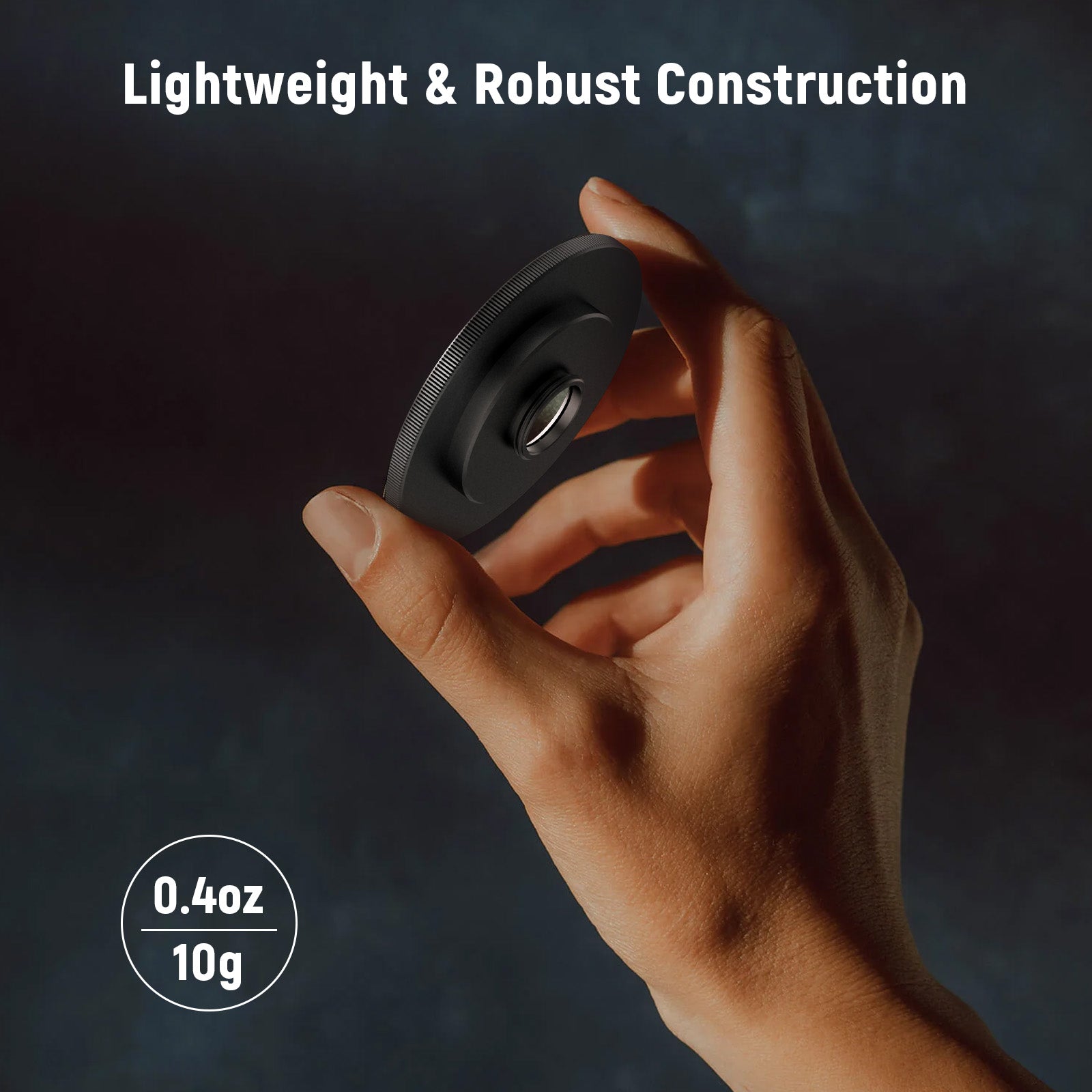 - Construcción liviana y robusta : fabricado íntegramente en aleación de aluminio anodizado negro, el adaptador de filtro de lente es liviano, sólido y compacto para creaciones al aire libre.
