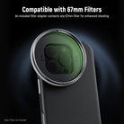 - Placa posterior para filtros de 67 mm : se adapta a todos los filtros de lentes de cámara de 67 mm, incluidos ND, CPL, difusión negra, contaminación lumínica y filtro de degradado, para tomas artísticas, cinematográficas y expresivas (los filtros se venden por separado)