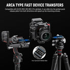 - Transferencia rápida entre trípode y dispositivo portátil : la base tipo Arca es compatible con la placa de liberación rápida de cardán DJI RS2 RSC2 RS3 RS3 Pro desde ambas direcciones y acelera el proceso de cambio de montaje del dispositivo. Puede transferir sin problemas este equipo de cine compacto con placa de batería V Lock desde la grabación portátil hasta la grabación de vídeo montada en un trípode.