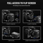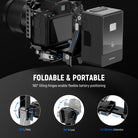- Perilla de bloqueo plegable y fácil de girar : las bisagras plegables permiten inclinaciones de 180° para un posicionamiento flexible de la batería sin bloquear la pantalla abatible de la cámara, lo que ahorra tiempo al retirar e instalar repetidamente la placa de la batería. Las bisagras están diseñadas con amortiguación para evitar que su dispositivo se caiga repentinamente, son fáciles de almacenar y transportar cuando están plegadas.