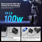 - Carga rápida PD bidireccional de 100 W : compatible sin problemas con PD3.0, QC2.0, QC3.0, PPS, AFC, FCP, SCP y DCP-1.5A, compatible con APPLE-2.4A y otros protocolos de carga rápida. El puerto de entrada y salida USB C ofrece una carga rápida PD bidireccional máxima de 100 W para sus teléfonos inteligentes, tabletas o computadoras portátiles a través de un cargador y cable PD de 120 W (ambos no incluidos). Esta batería PS150E con soporte en V se puede cargar por completo en 2,5 h con un juego de cargador GaN de carga rápida PD de 120 W (no incluido)