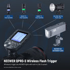 - Sistema inalámbrico NEEWER 2.4G incorporado : empareje el disparador Q-Pro incluido con el estroboscópico Q3 en el mismo canal y contrólelo de forma remota desde una distancia de hasta 328'/100 m. El disparador QPRO cuenta con 5 grupos y 32 canales para una fácil conexión.