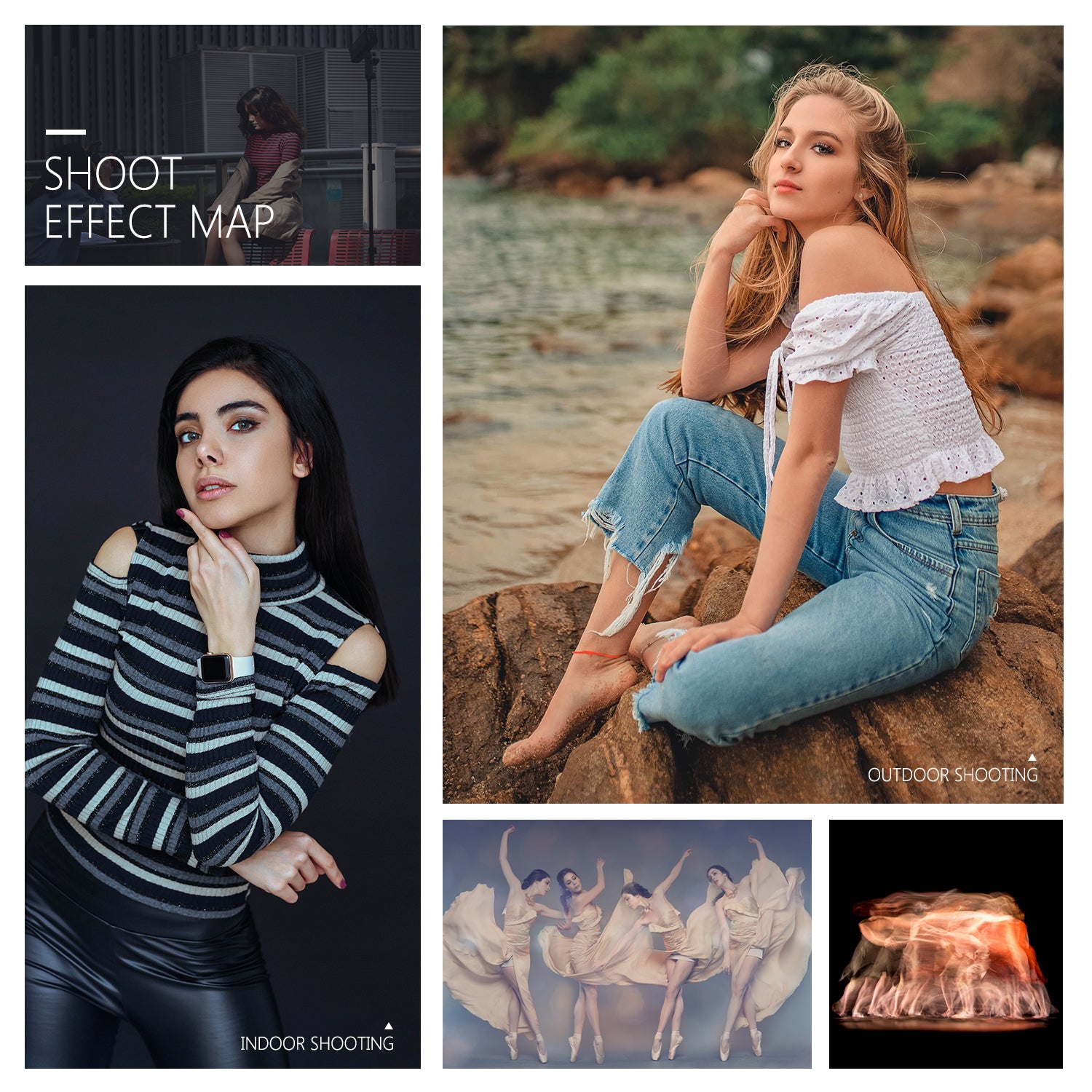 - POTENCIA AMPLIA Y TEMPERATURA DE COLOR AJUSTABLES: El rango de ajuste de potencia del Q3 es de 1/1 a 1/128. La temperatura de color se mantiene en el rango de 5600 ± 200K. Por lo tanto, puede elegir la potencia y la temperatura de color adecuadas a su gusto.
