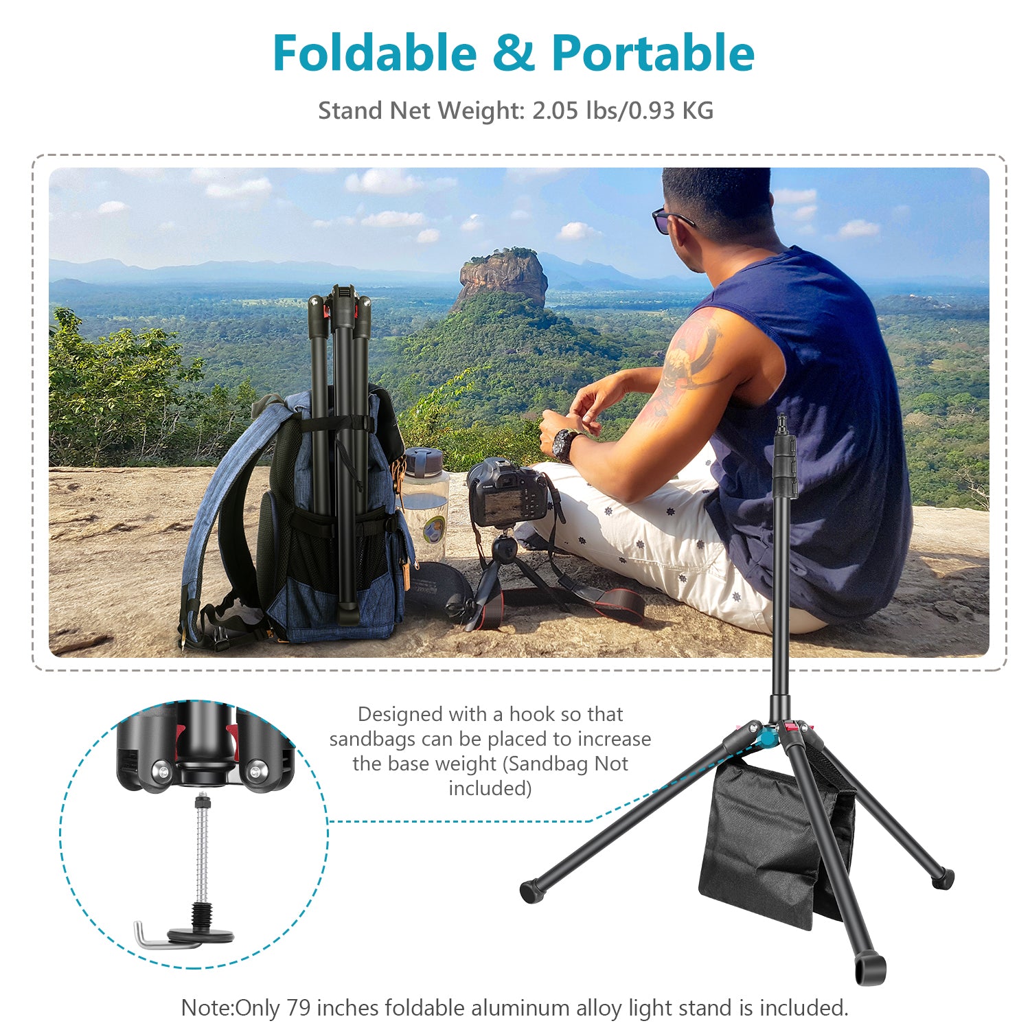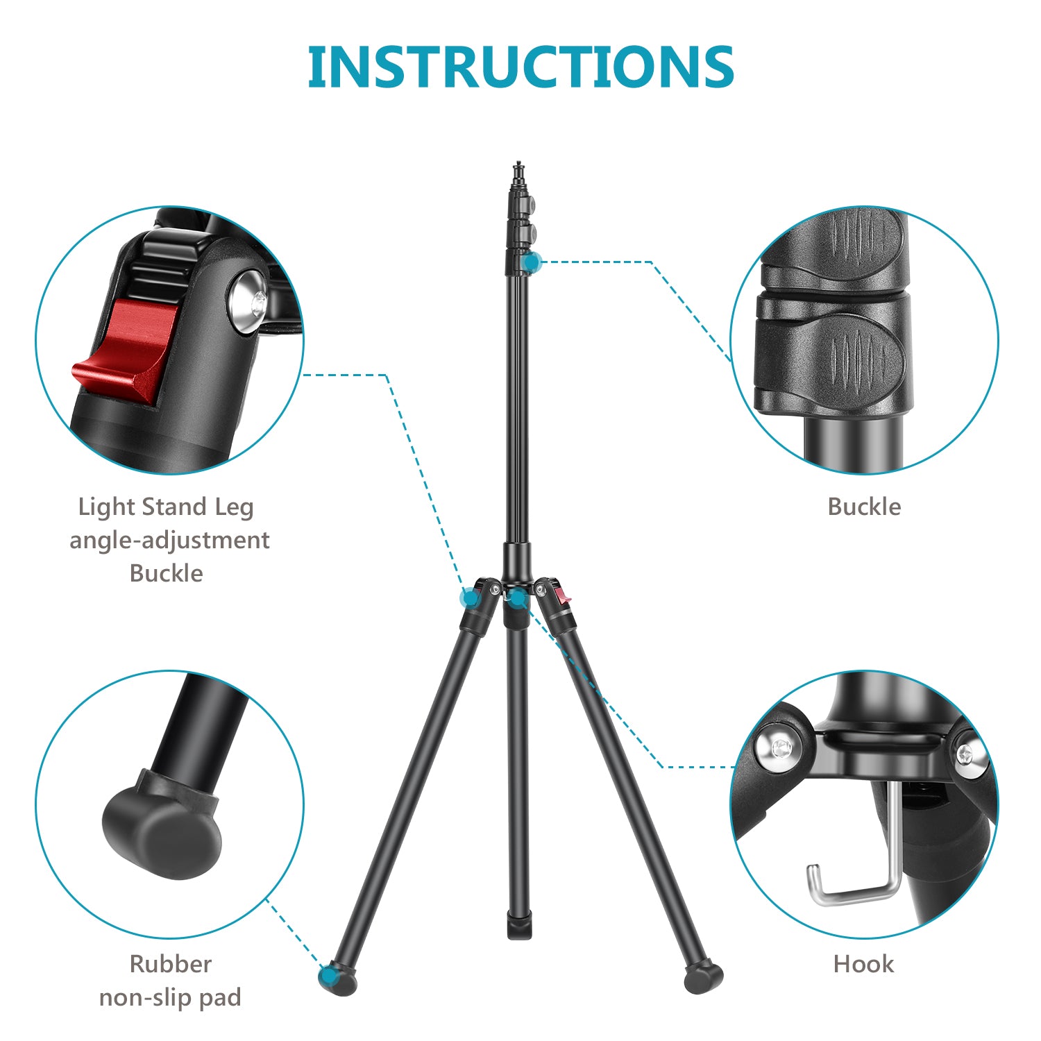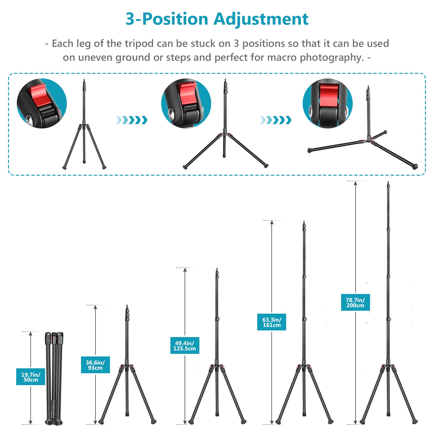 - Diseño fácil de usar : este soporte de luz tiene un diseño mejorado con un estilo de trípode con función de trípode en el que cada pata del trípode se puede fijar en 3 posiciones para que pueda usarse en terrenos irregulares y sea perfecto para disparos en ángulo bajo.