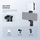 - Soporte universal para zapata fría : la parte inferior de un soporte para zapata fría te permite conectar una cámara, de modo que puedas previsualizar y monitorear las imágenes en tiempo real en tu teléfono con este soporte para cámara. O puedes conectar una luz de relleno LED, una luz de video, un micrófono u otro equipo para mejorar la calidad de tu video.