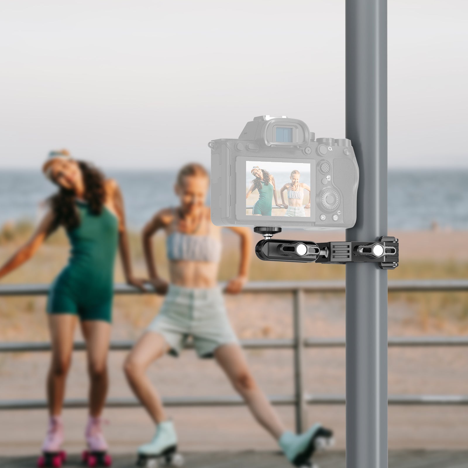 - Ajuste de ángulo flexible : los dos cabezales esféricos giratorios de 360° en el brazo mágico de 3"/7,62 cm se pueden ajustar a cualquier ángulo para una flexibilidad de disparo óptima. La perilla de tornillo de este soporte para cámara de motocicleta permite una fijación rápida y sencilla de los cabezales esféricos