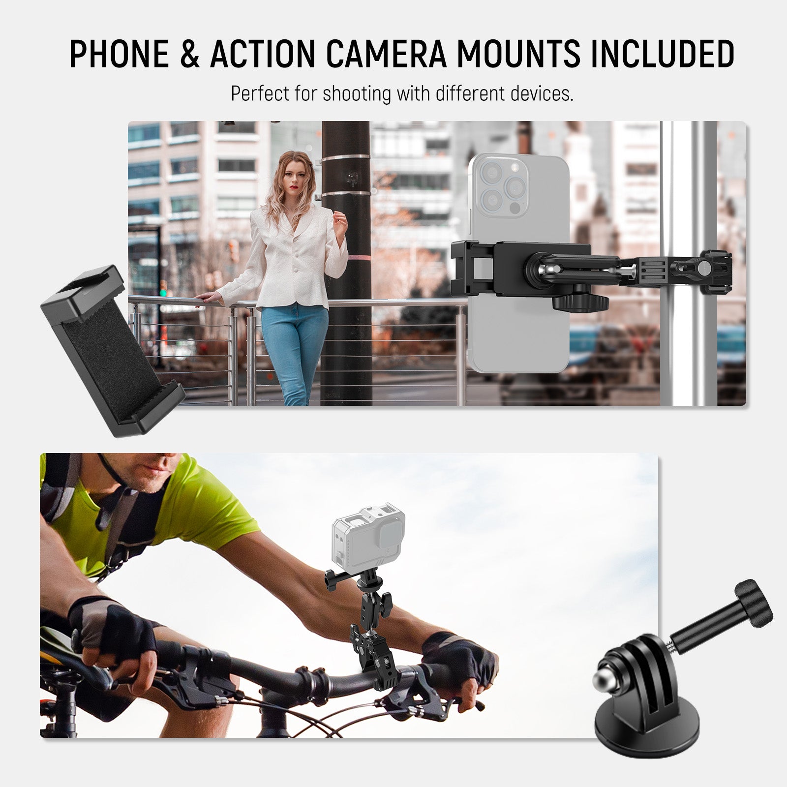- Fotografía con cámara y teléfono : sujete su teléfono inteligente (2,2-3,3"/55-85 mm de ancho) con el soporte para teléfono o monte su cámara de acción con los adaptadores y accesorios incluidos. El kit de accesorios ST83 para bicicleta/motocicleta es compatible con iPhone 16 15 Pro Max Plus 14 13 Mini compatible con Samsung Galaxy S22 S23 S24 Ultra compatible con GoPro Hero 12 go pro hero 11 10 9 8 7 Black compatible con DJI Osmo Action 4 3 compatible con Insta360 x3 x4 insta 360 ace pro compatible con mevo start, etc.