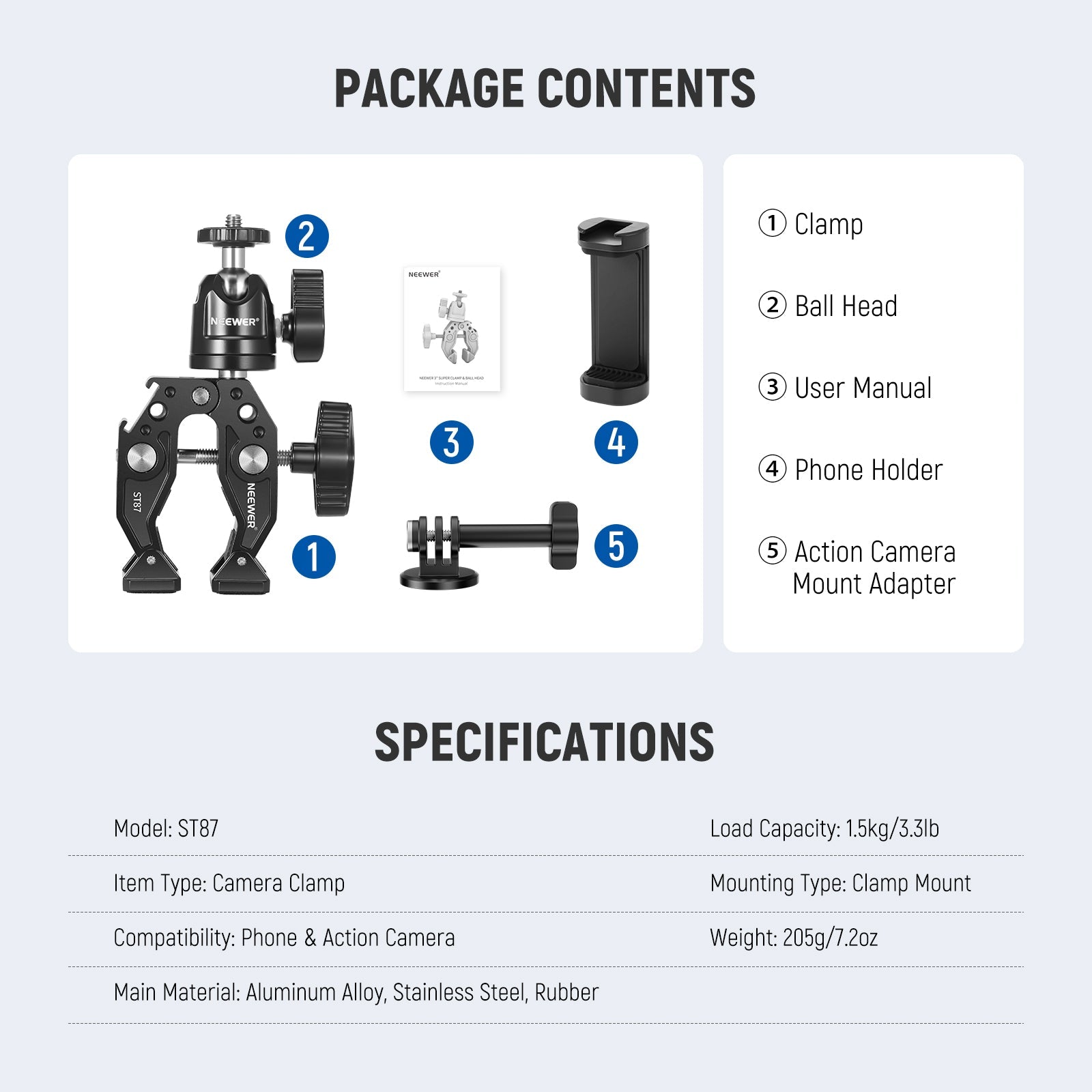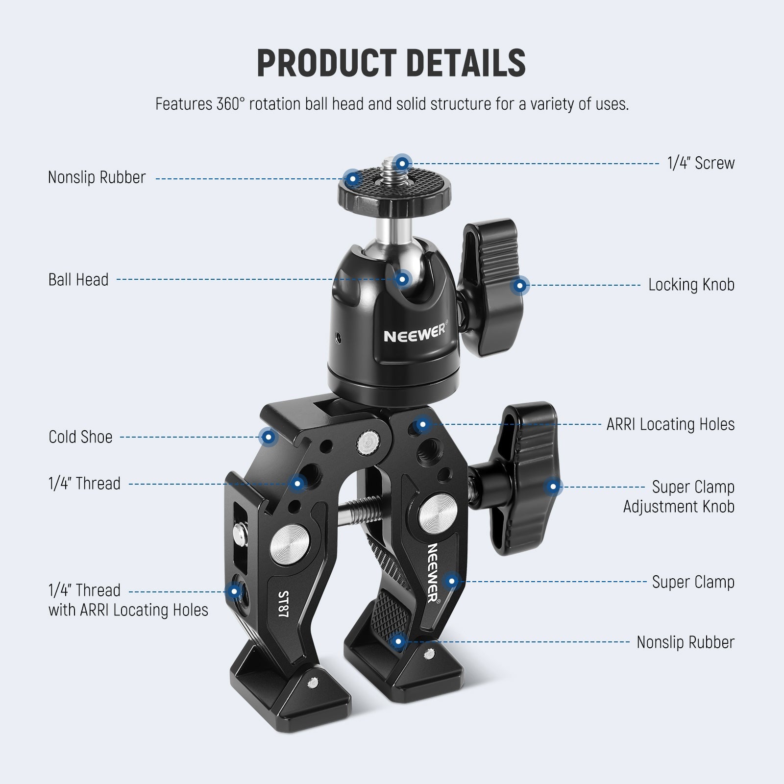 Abrazadera súper con cabezal esférico NEEWER ST87