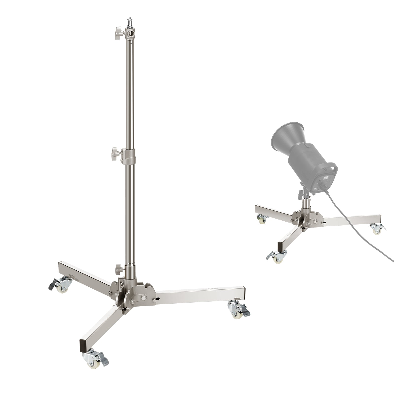 - Movilidad y portabilidad mejoradas : equipado con tres ruedas de primera calidad, es fácil y cómodo de mover y colocar para lograr ajustes fotográficos óptimos. El soporte de luz se puede plegar en un tamaño compacto con una estructura de plegado rápido en la base para un fácil almacenamiento y transporte, lo que lo hace más cómodo de transportar para fotografías al aire libre.