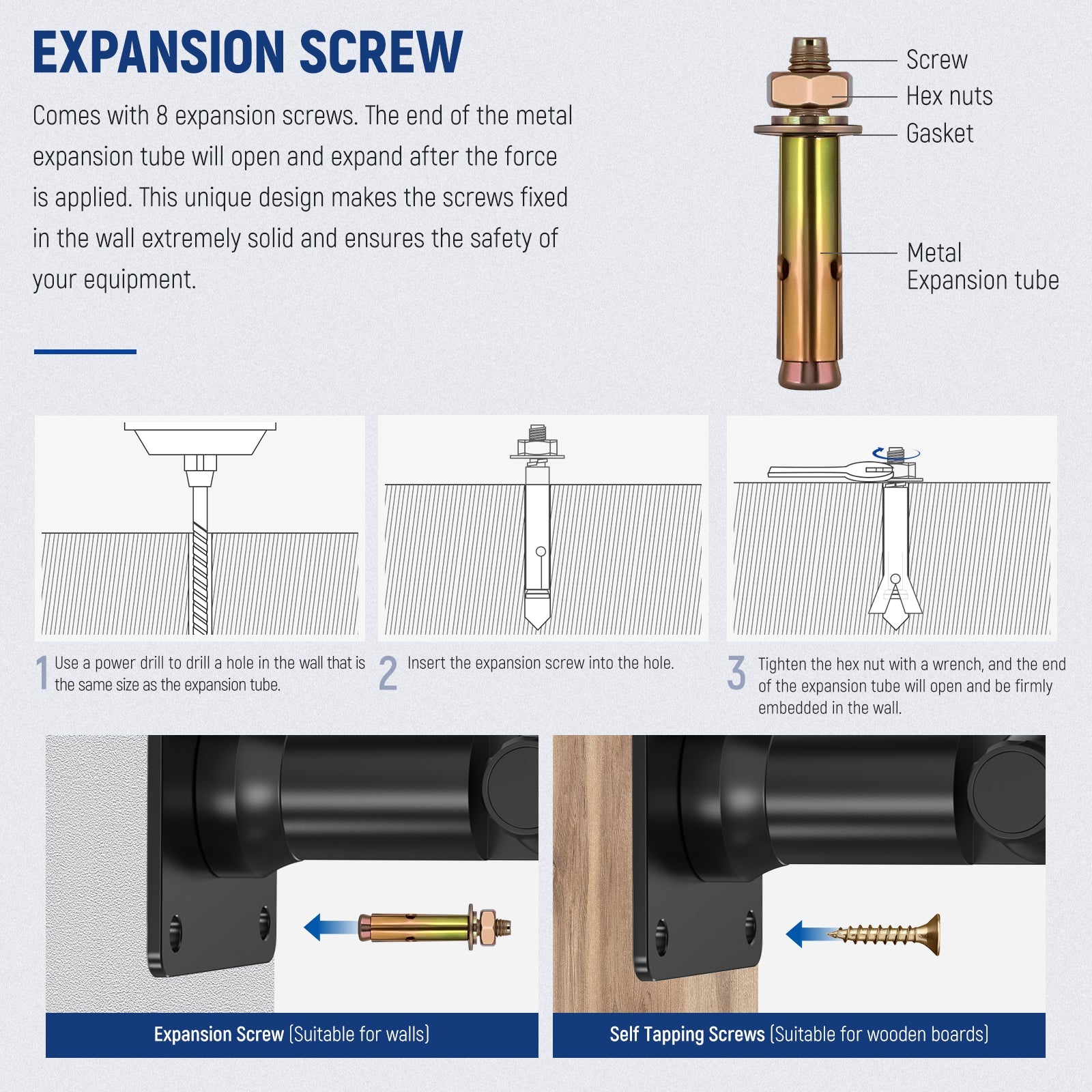 - Anclajes incluidos : Incluye 4 tornillos de expansión y 6 tornillos autorroscantes para una instalación segura y sencilla. No incluye destornilladores ni taladros.