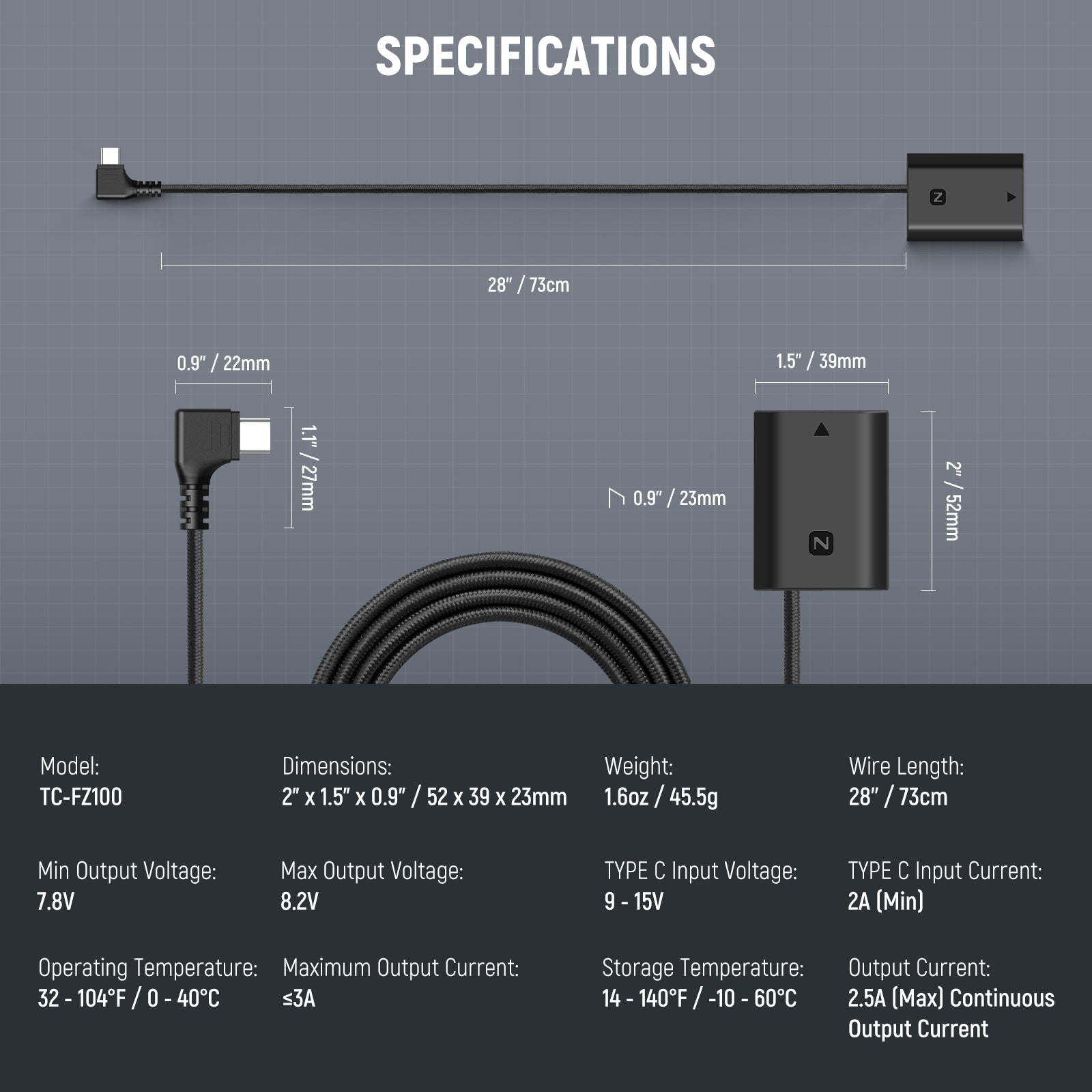 Batería ficticia NEEWER TC-FZ100 USB C a NP-FZ100 con salida de 8,2 V para cargador portátil