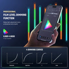 - Atenuación PWM precisa : la varilla de luz LED portátil permite 4 curvas de atenuación (lineal/S/logarítmica/exponencial) y patrones de atenuación X/Y, lo que permite un ajuste de brillo suave y profesional. Los múltiples modos incluyen HSI para 36 000 colores, RGBCW para un ajuste de la relación de color de 0 a 255 y el modo RESCO y LEE para restaurar por completo 40 geles de color de nivel de película, ajustados rápidamente a los colores específicos de la escena. Deslice suavemente un dedo por la barra táctil para seleccionar colores para su fotografía, que se pueden desactivar con un clic