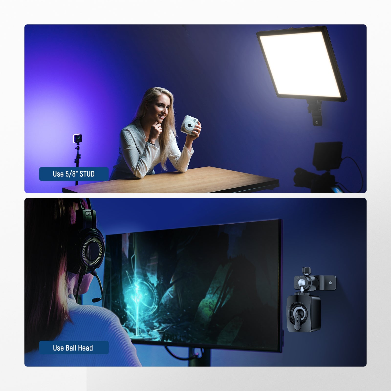 - Tornillo de 1/4" y perno de 5/8" : el soporte cuenta con un perno de 5/8" y un tornillo de 1/4", lo que lo hace compatible con varios tipos de equipos, incluidas luces anulares, iluminación de estudio, luces de video LED y luces estroboscópicas. , cámaras, monitores