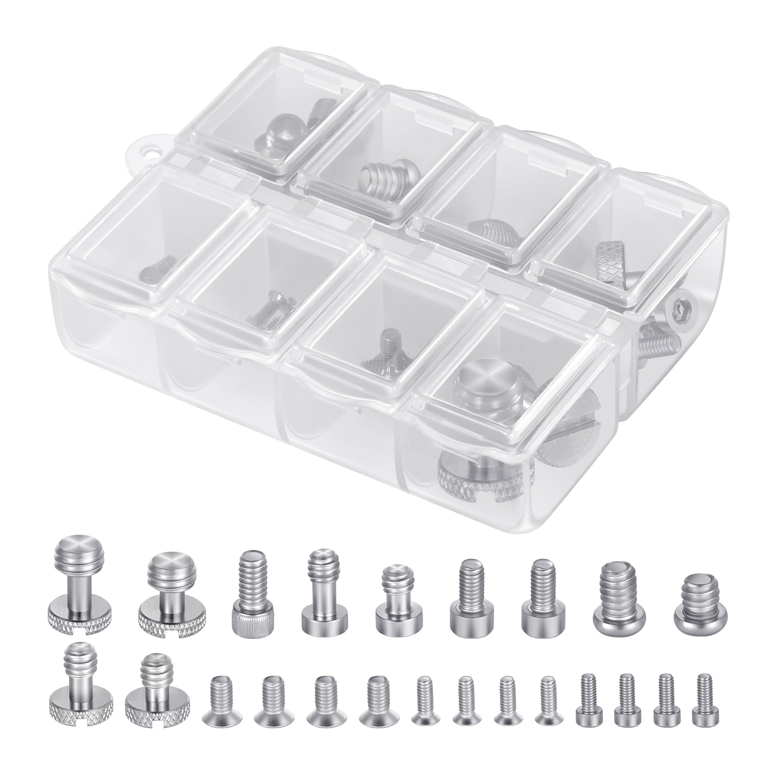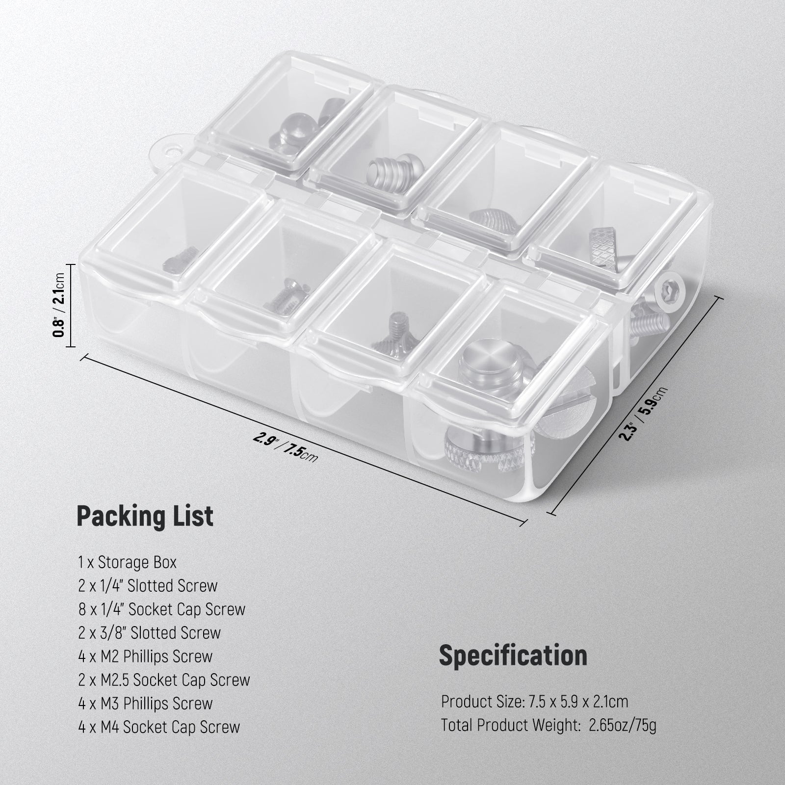 - Práctico juego de tornillos para fotografía : los accesorios pequeños de la cámara, como los tornillos, se pierden todo el tiempo. Obtenga este juego de tornillos para montaje de cámara y tenga siempre tornillos de repuesto a mano. Se incluyen seis tipos de tornillos: tornillos de 1/4", 3/8", M2, M2.5, M3 y M4
