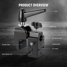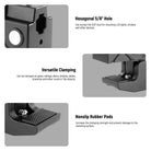 - Varios puntos de montaje : una rosca de 1/4" conecta un brazo mágico o un adaptador de rótula doble. Dos roscas M5 y dos orificios de unión están diseñados para conectar otra abrazadera o soporte de cámara de brazo mágico para una aplicación flexible.