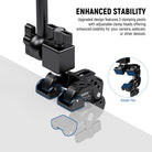 - Estabilidad y flexibilidad mejoradas : mejorado con el diseño de conexión de engranajes, el brazo mágico articulado de metal con súper abrazadera permite montar de manera estable una cámara o cámara web (carga máxima de 2,2 lb/1 kg) sobre la cabeza usando la súper abrazadera inferior, aumentada a tres puntos de pivote para estabilidad sobre mesas. La estructura de cabezal de bola múltiple permite un posicionamiento flexible y el diseño integrado garantiza un uso inmediato nada más sacarlo de la caja, sin necesidad de un ensamblaje más frecuente. Se incluye un soporte para teléfono para una configuración sin complicaciones