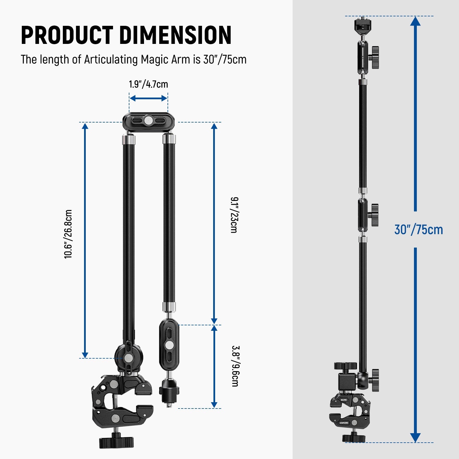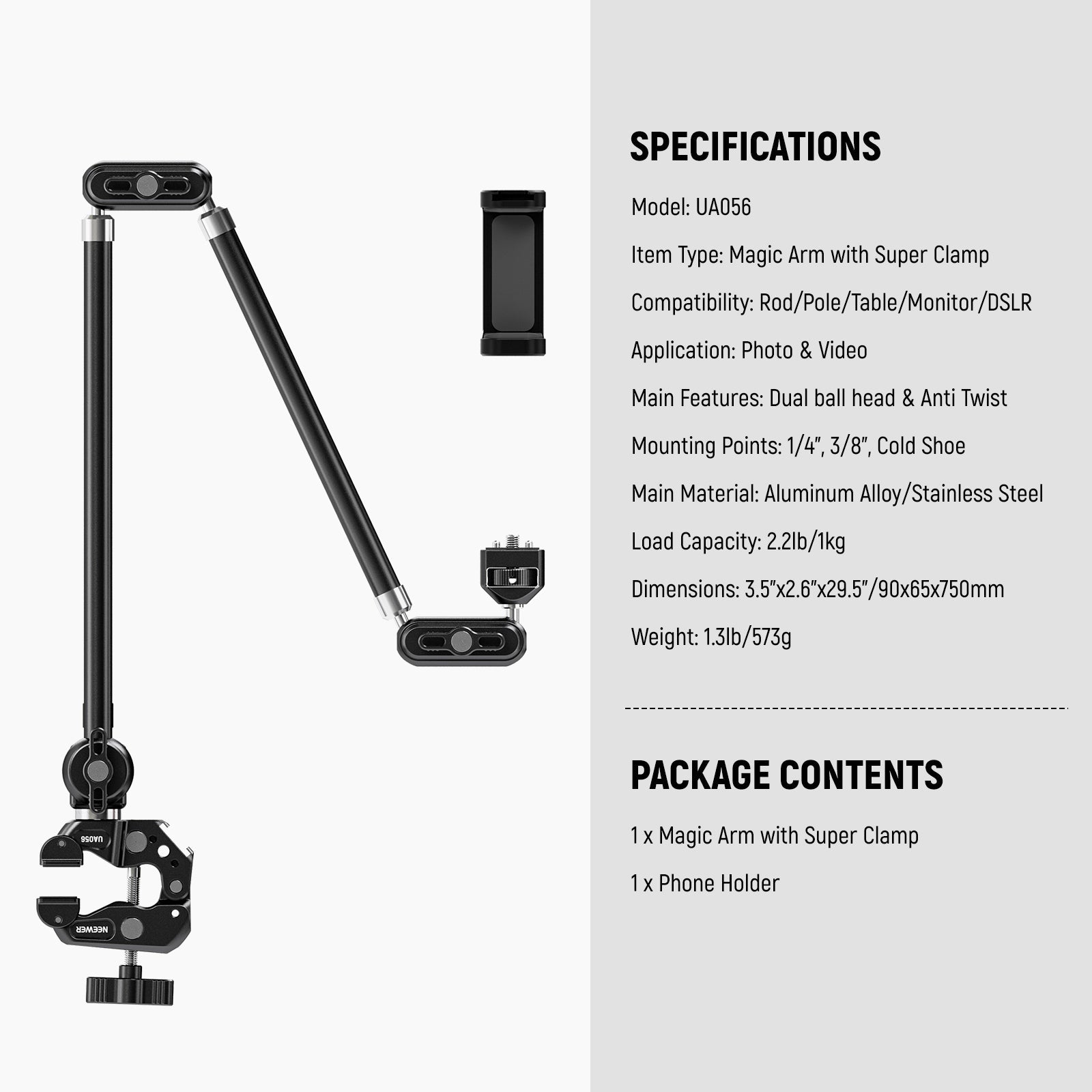 Brazo mágico articulado NEEWER UA056 de 30" con súper abrazadera y soporte para teléfono