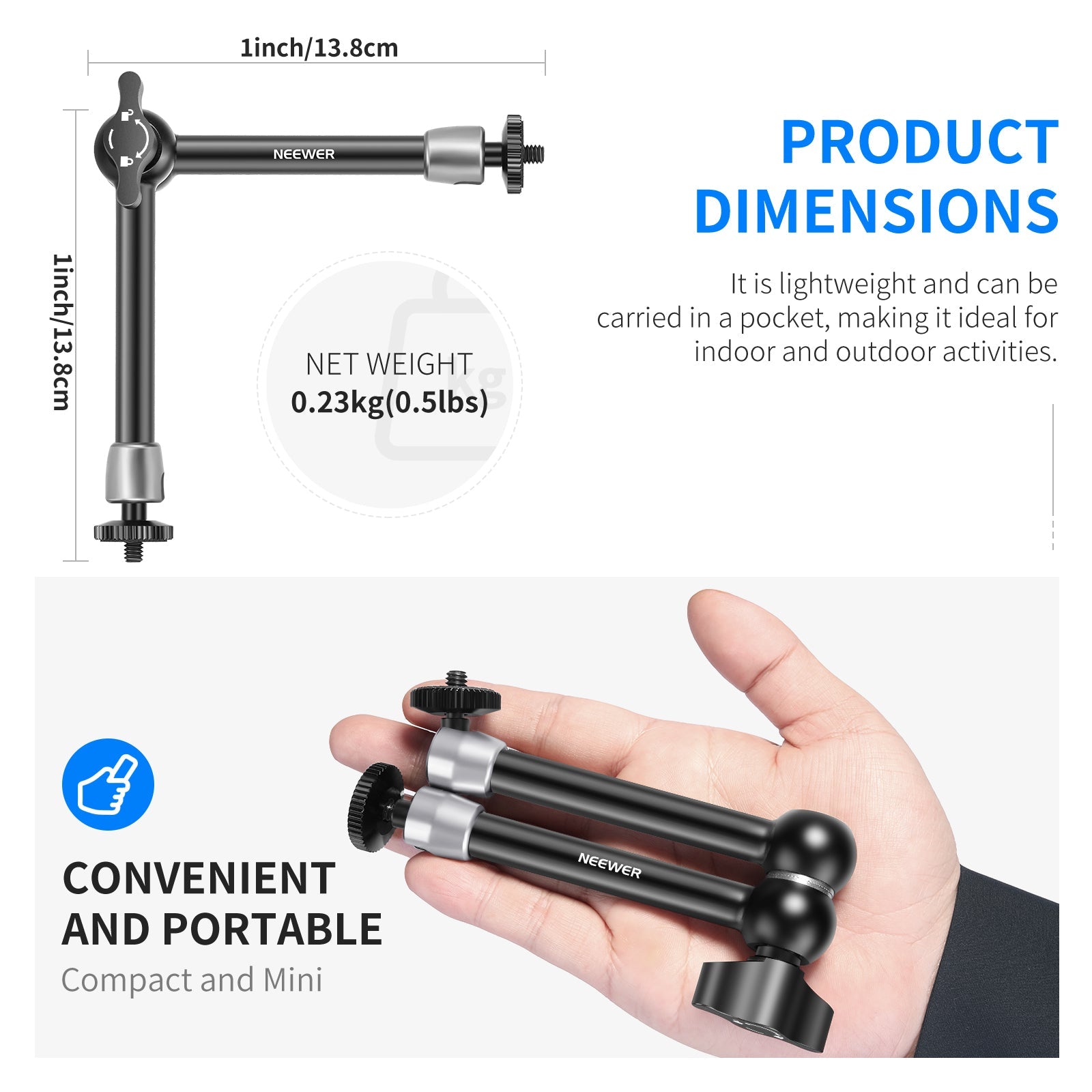 - Hecho de aleación de aluminio, el brazo mágico es duradero, sólido pero liviano.
