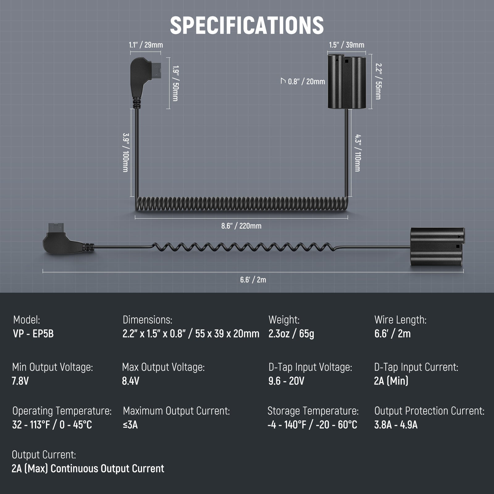 Batería ficticia NEEWER VP-EP5B EN-EL15 a D Tap