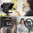 - Divisor de haz HD/Puntos de montaje : el vidrio divisor de haz HD de 9" puede reflejar su guión con una claridad tranquilizadora. Cuenta con una transmisión de luz del 75 %, un ajuste vertical de 0,9"/2,3 cm y un rango de lectura de 6,6' (2 m) para que pueda leer el guión completo sin esfuerzo y sin tener que recitar cada palabra de antemano. Varias roscas de 1/4" y 3/8" conectan el teleprompter a un trípode o soporte de cámara, y una ranura para zapata fría en la parte superior es adecuada para montar mini micrófonos, luces LED y otros accesorios.