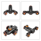 - Liviana y duradera: fabricada con aleación de aluminio de alta calidad y plástico ABS, la plataforma rodante puede soportar cámaras DSLR, videocámaras y teléfonos inteligentes de hasta 6,6 lb (3 kg). Diseñado para caber en la palma de la mano, es liviano y convenientemente portátil para los cineastas que viajan.