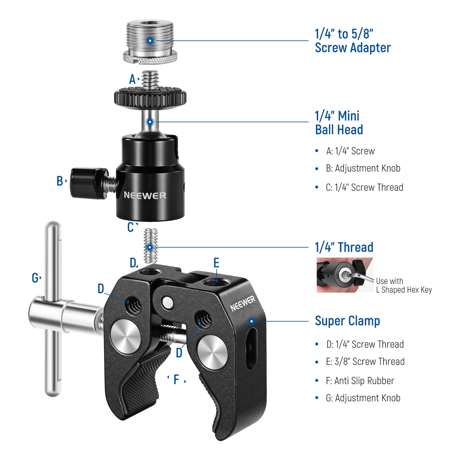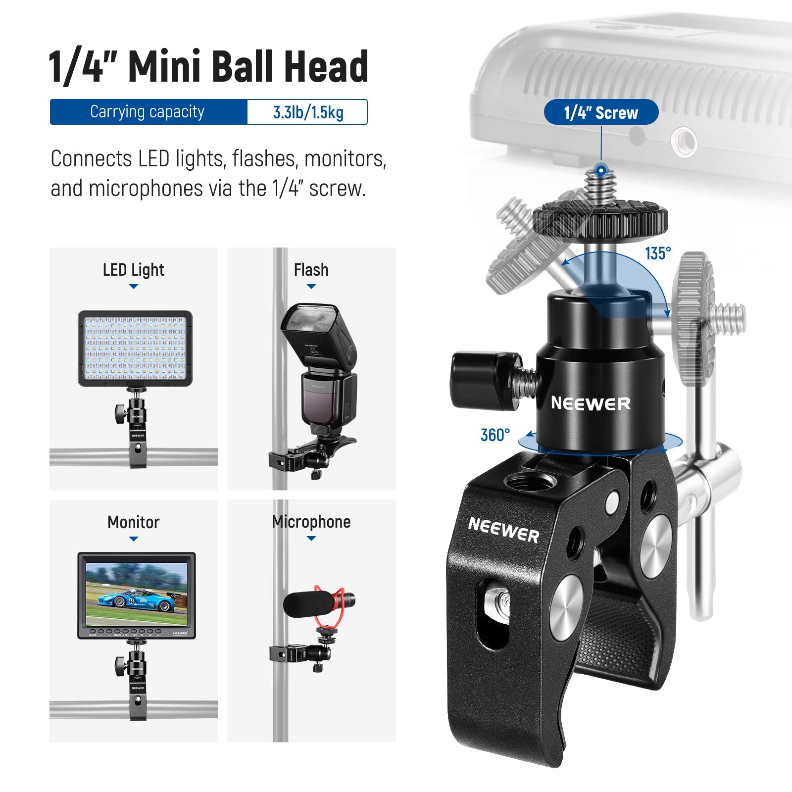 NEEWER ST48 Abrazadera de Cangrejo y Mini Cabezal de Bola para Micrófono
