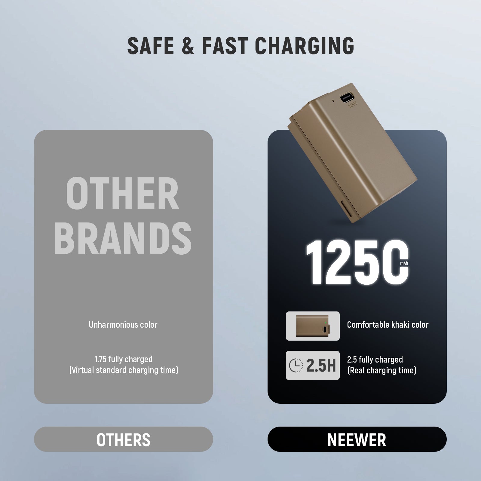 - Carga de batería rápida y segura : cargue de forma segura esta batería de 1250 mAh al 100 % en 2,5 horas utilizando un cargador de pared USB de 5 V 2 A (no incluido). Nota: la carga rápida PD no es compatible