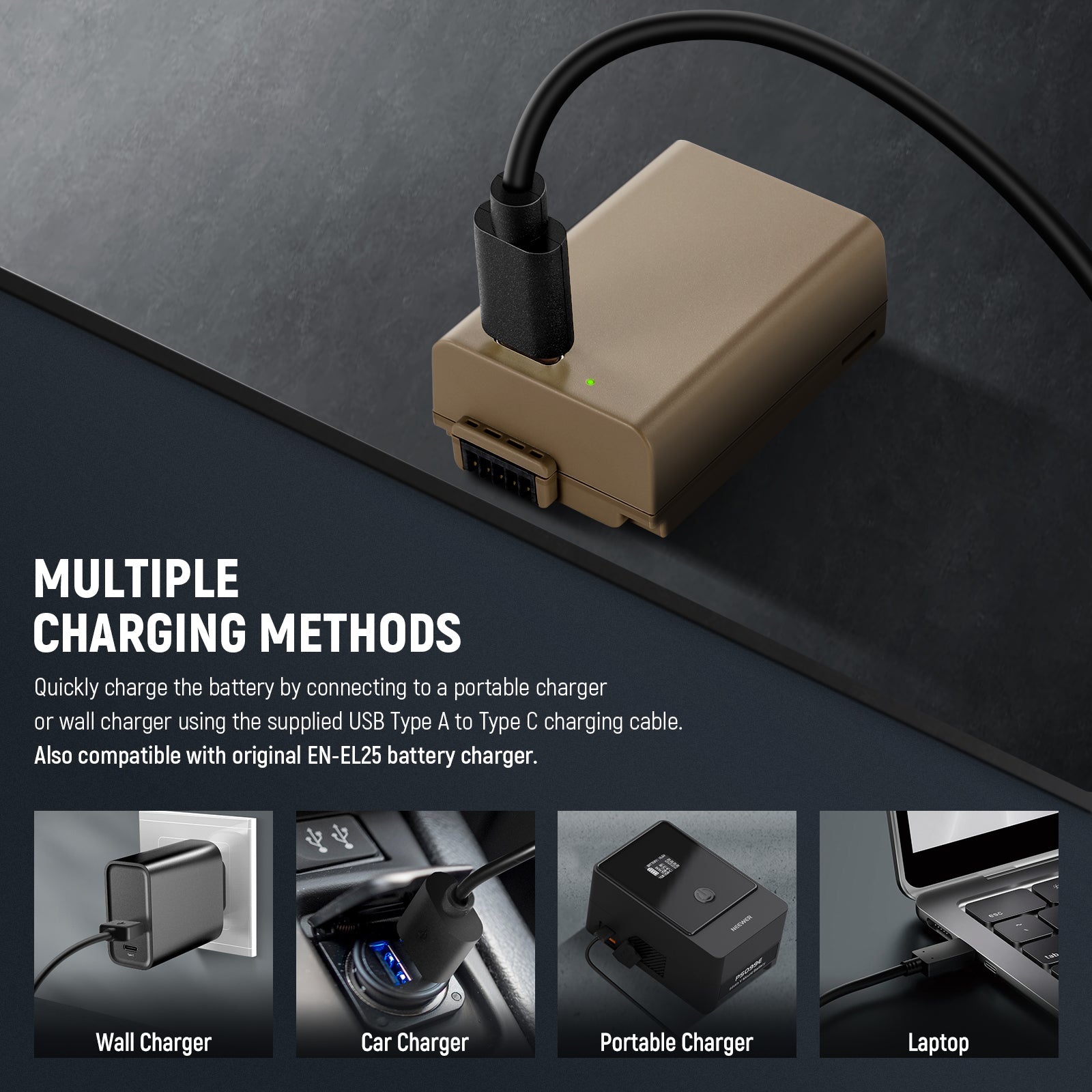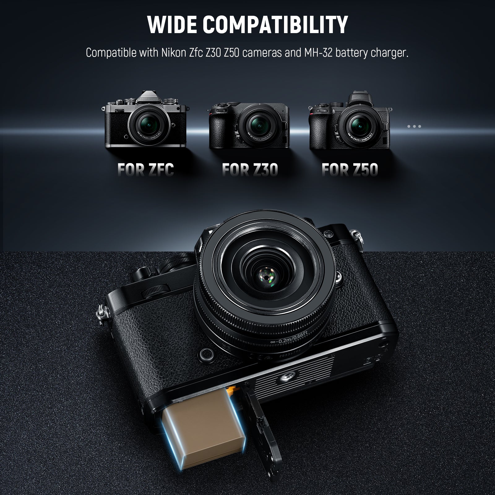 - Batería de repuesto para Nikon EN-EL25 : esta EN-EL25 es totalmente compatible con las cámaras Nikon Zfc Z30 Z50 y el cargador de batería MH-32.
