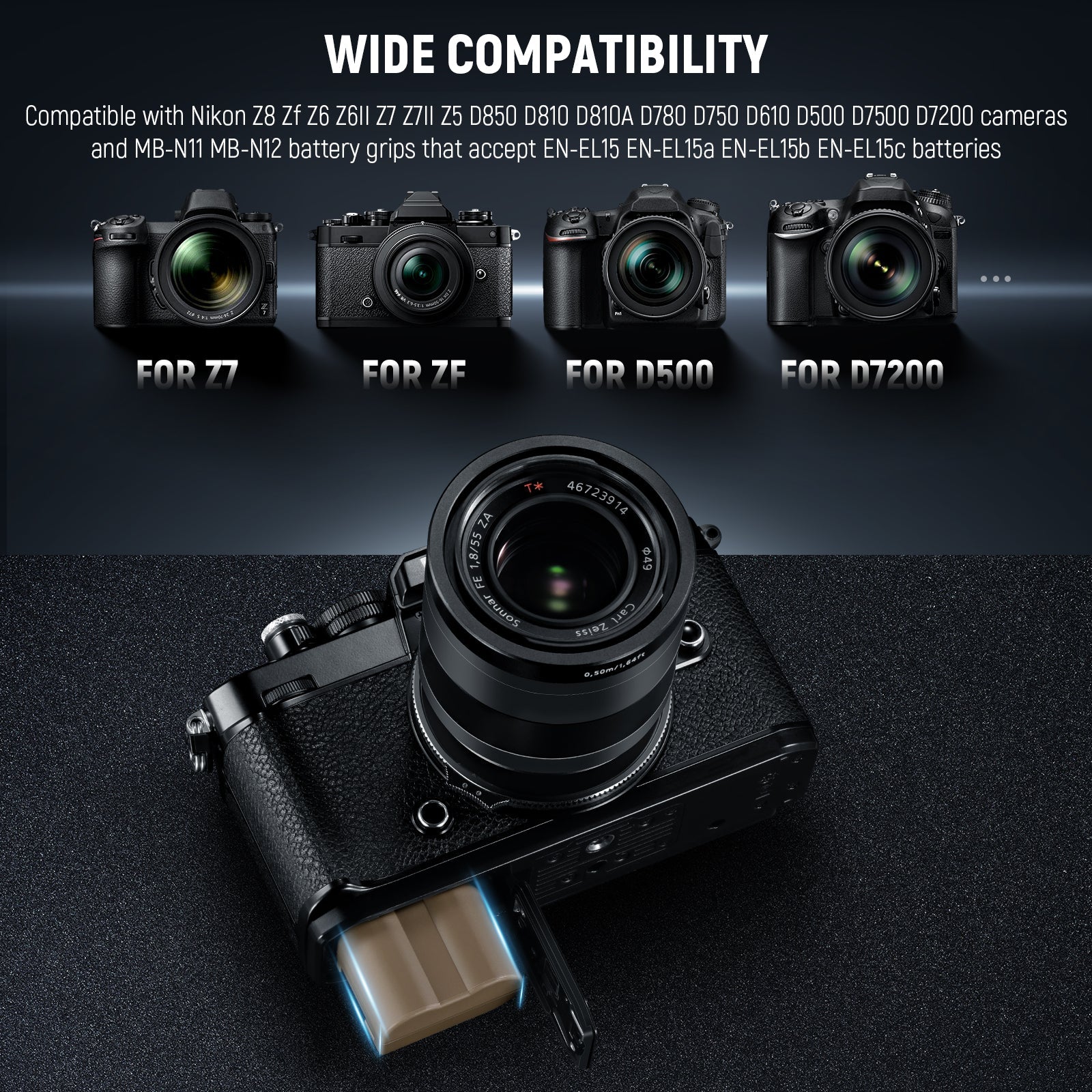 - Repuesto para batería de cámara Nikon EN-EL15c : esta batería EN-EL15c es compatible con cámaras Nikon Z8 Zf Z6 Z6II Z7 Z7II Z5 D850 D810 D810A D780 D750 D610 D500 D7500 D7200 y empuñaduras de batería MB-N11 MB-N12 que aceptan EN-EL15 EN -Baterías EL15a EN-EL15b EN-EL15c