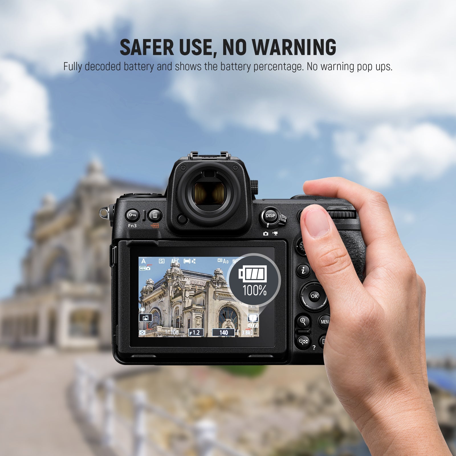 - Totalmente decodificado para un uso más seguro : esta batería está completamente decodificada. No provocará que aparezca una alerta de advertencia en la pantalla de su cámara y mostrará el ícono de estado de la batería como las baterías originales.