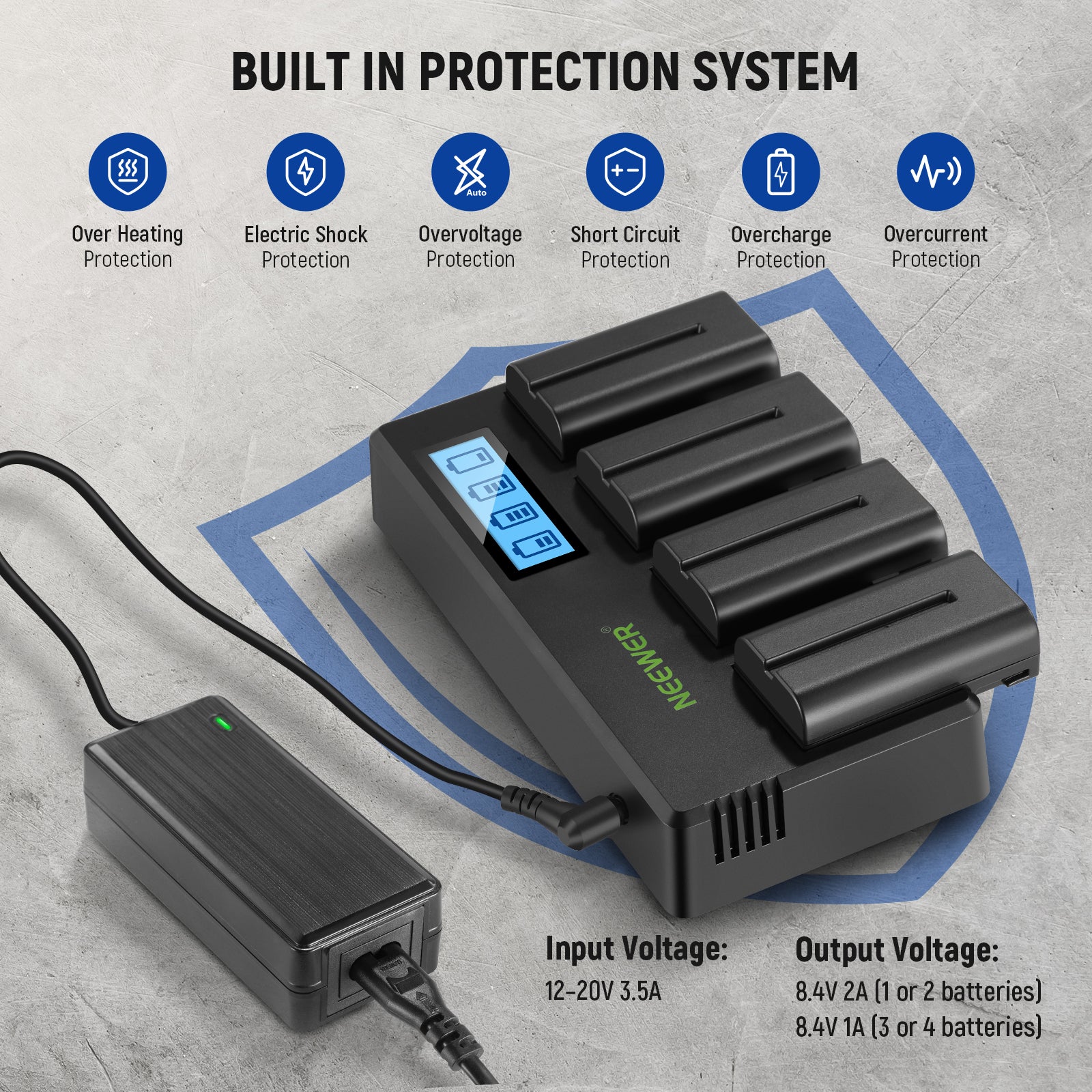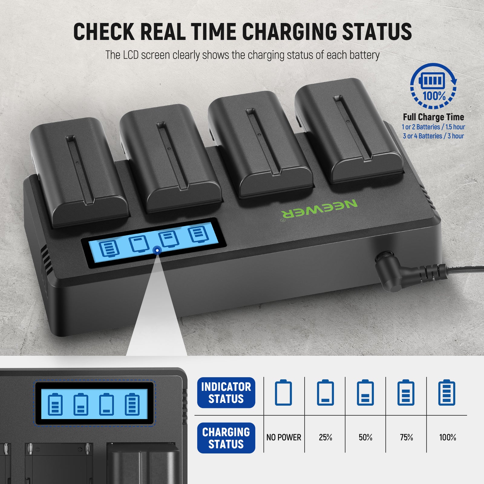 - Amplia compatibilidad : las baterías NP-F550 alimentan cualquier dispositivo con una placa de batería NP-F, incluidas videocámaras y cámaras de video, monitores de campo Neewer, luces anulares y luces de video LED. El cargador es compatible con baterías NP-F550, 570, 750, 770, 960, 970, 975 y otras baterías NP-F.