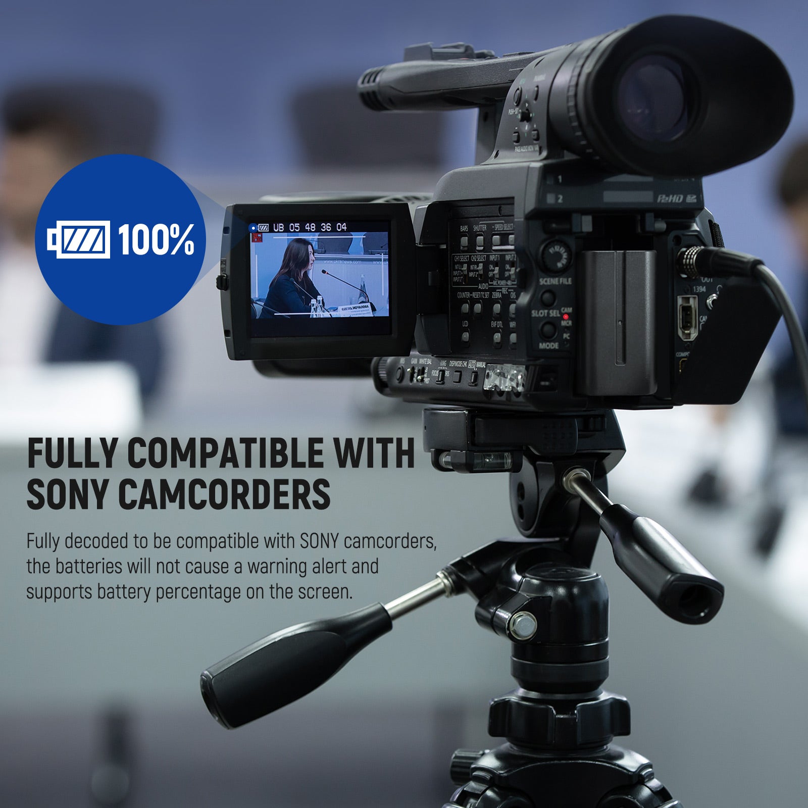 - Batería de alta potencia : cuatro baterías NP-F550 de 2600 mAh proporcionan suficiente energía para su videocámara, monitor de campo, anillo de luz y luz de video LED cuando graba en exteriores.
