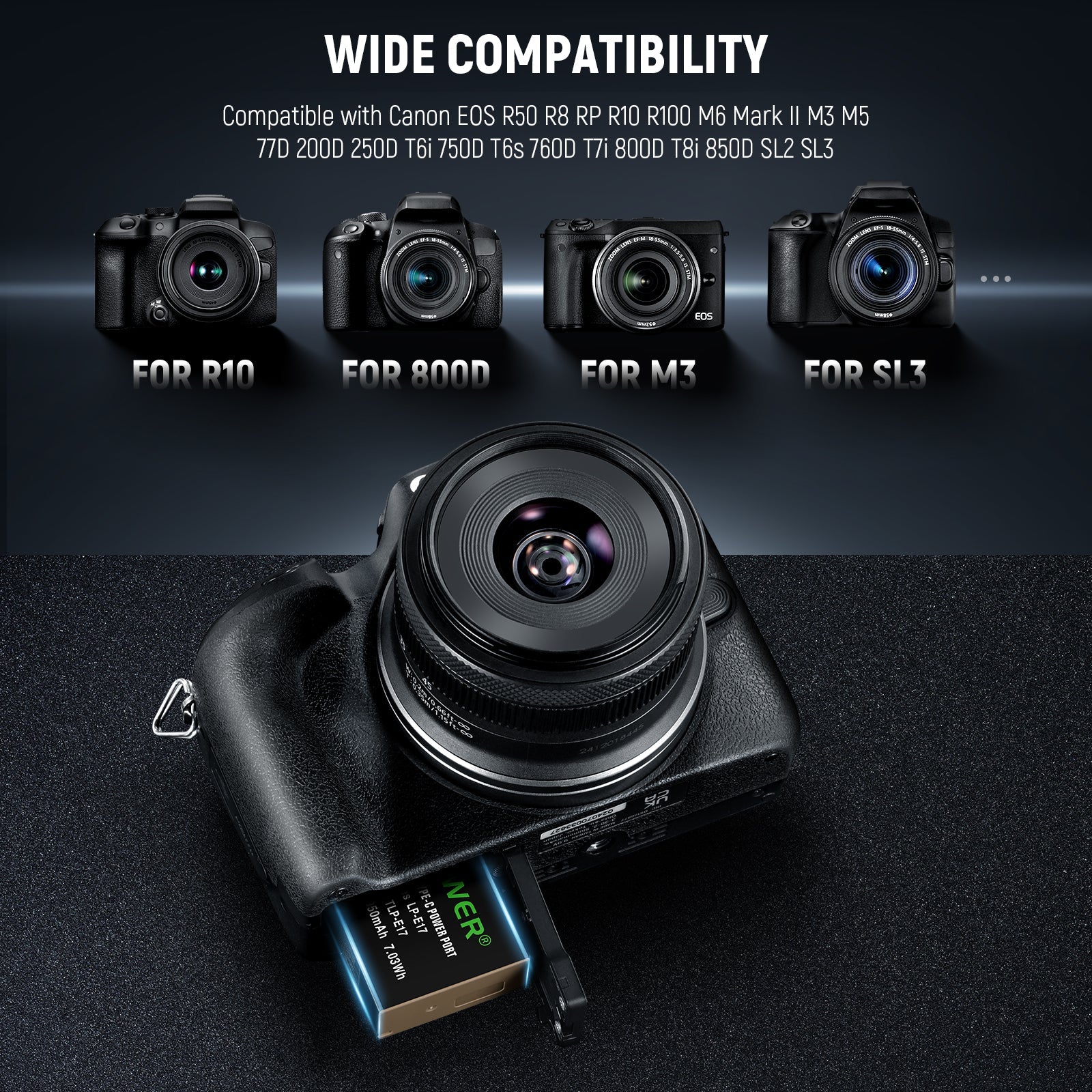 - Batería de repuesto para Canon LP-E17 : esta batería LP-E17 es compatible con Canon EOS R50 R8 RP R10 R100M6 Mark II M3 M5 77D 200D 250D T6i 750D T6s 760D T7i 800D T8i 850D SL2 SL3