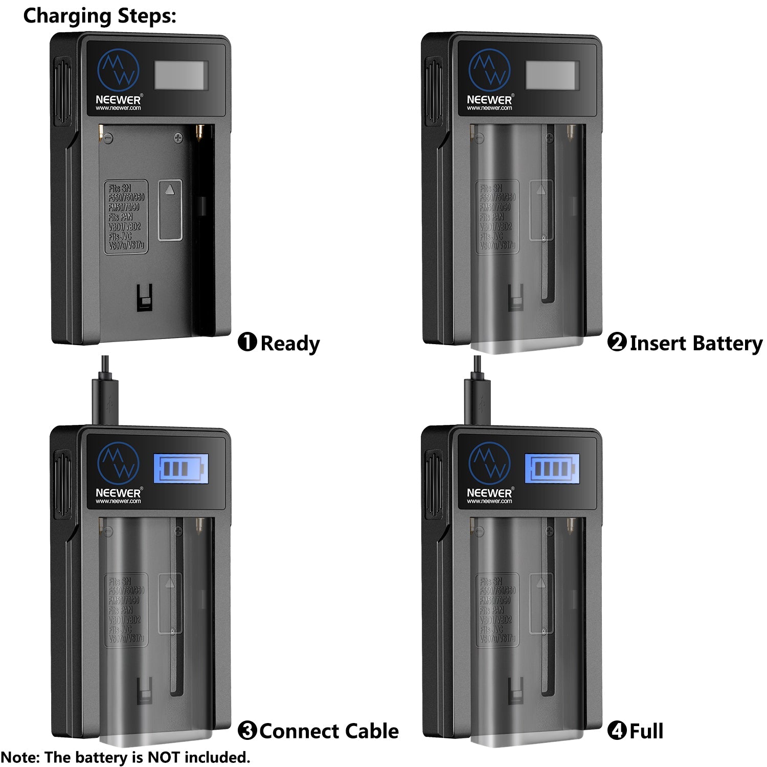 - Neewer NP-F550/F750/F960/F970 Cargador de batería micro USB de repuesto para NP-FM50/FM70/FM90,QM71D,91D, NP-F500H/F55H