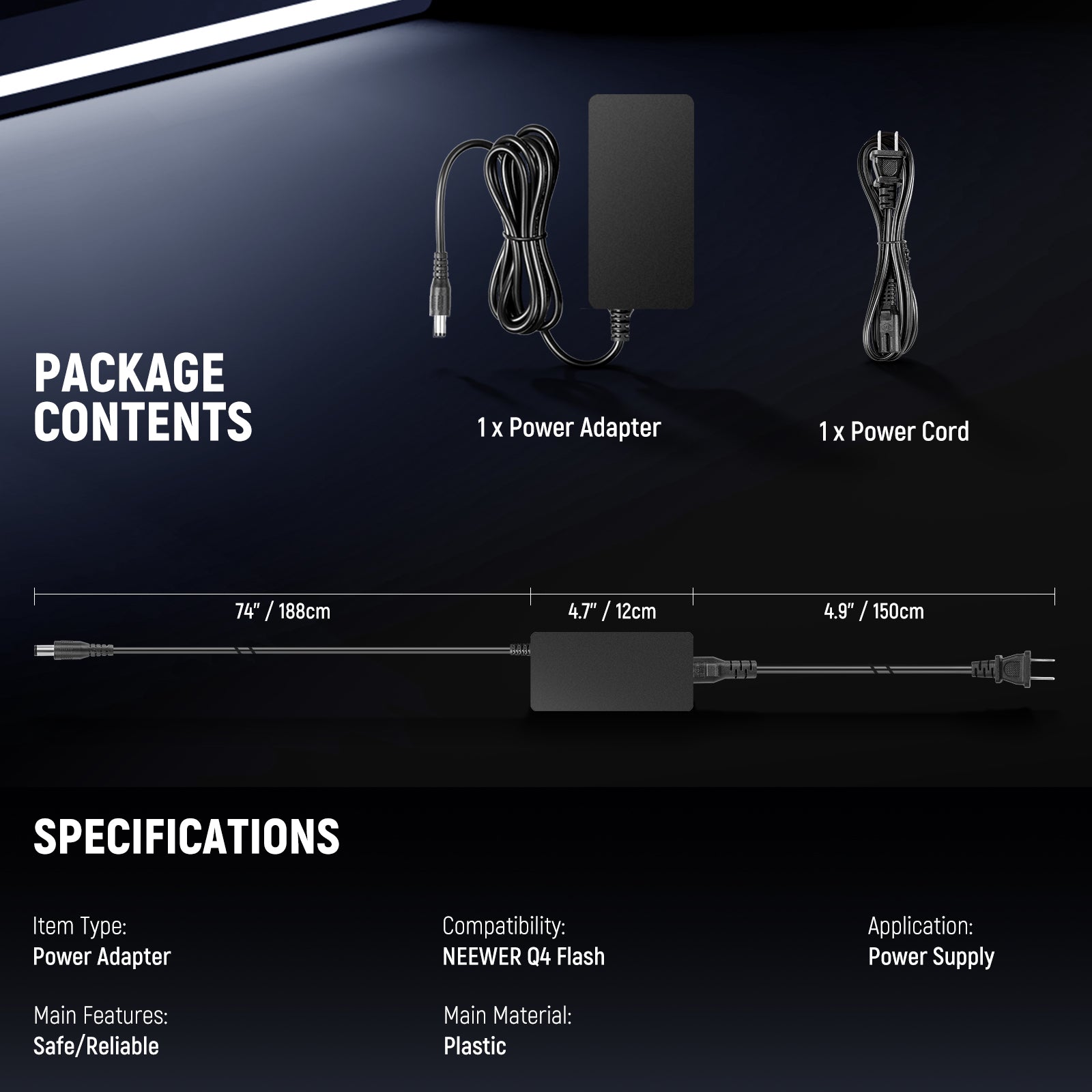 Adaptador de corriente y cable de alimentación NEEWER NC-Q4 Q4