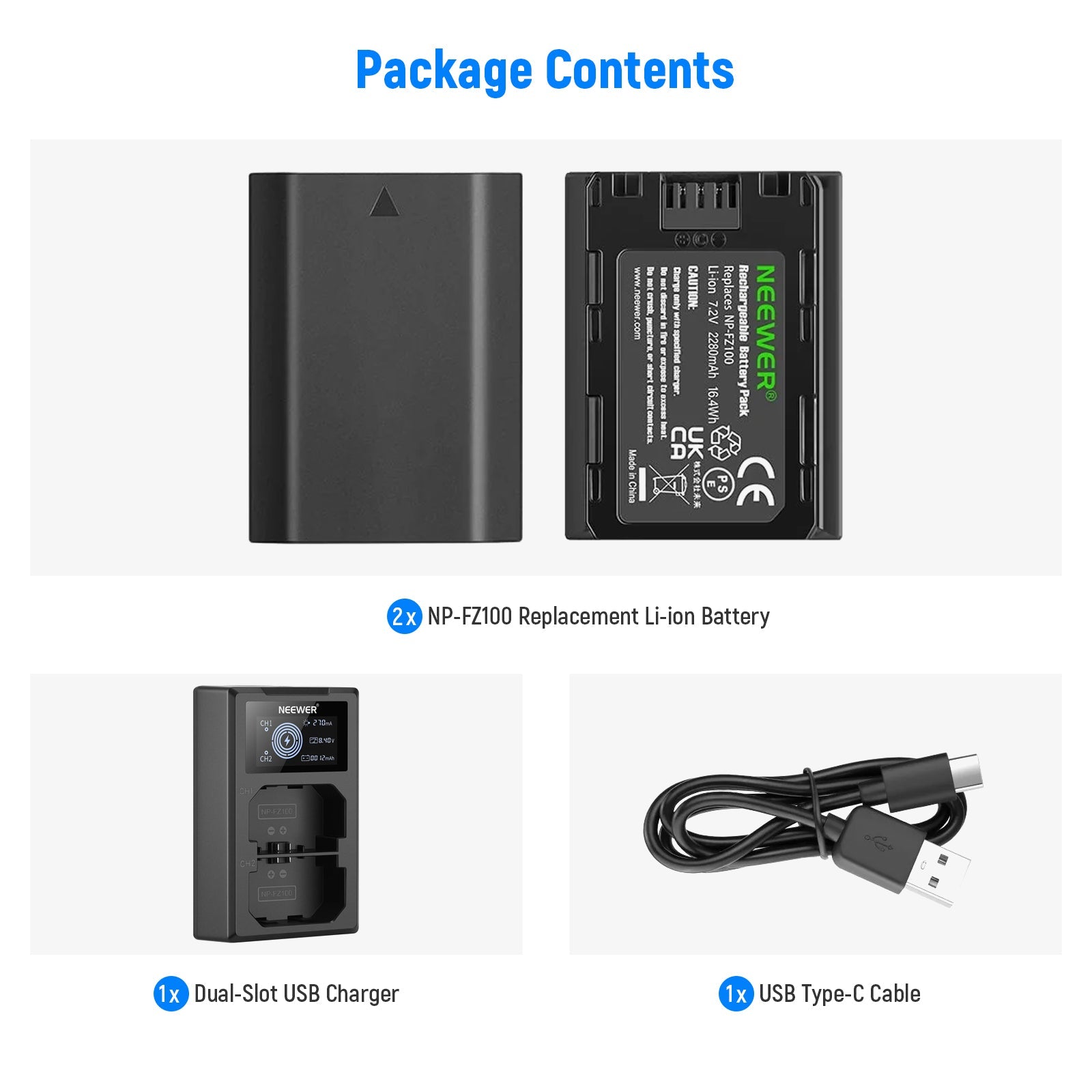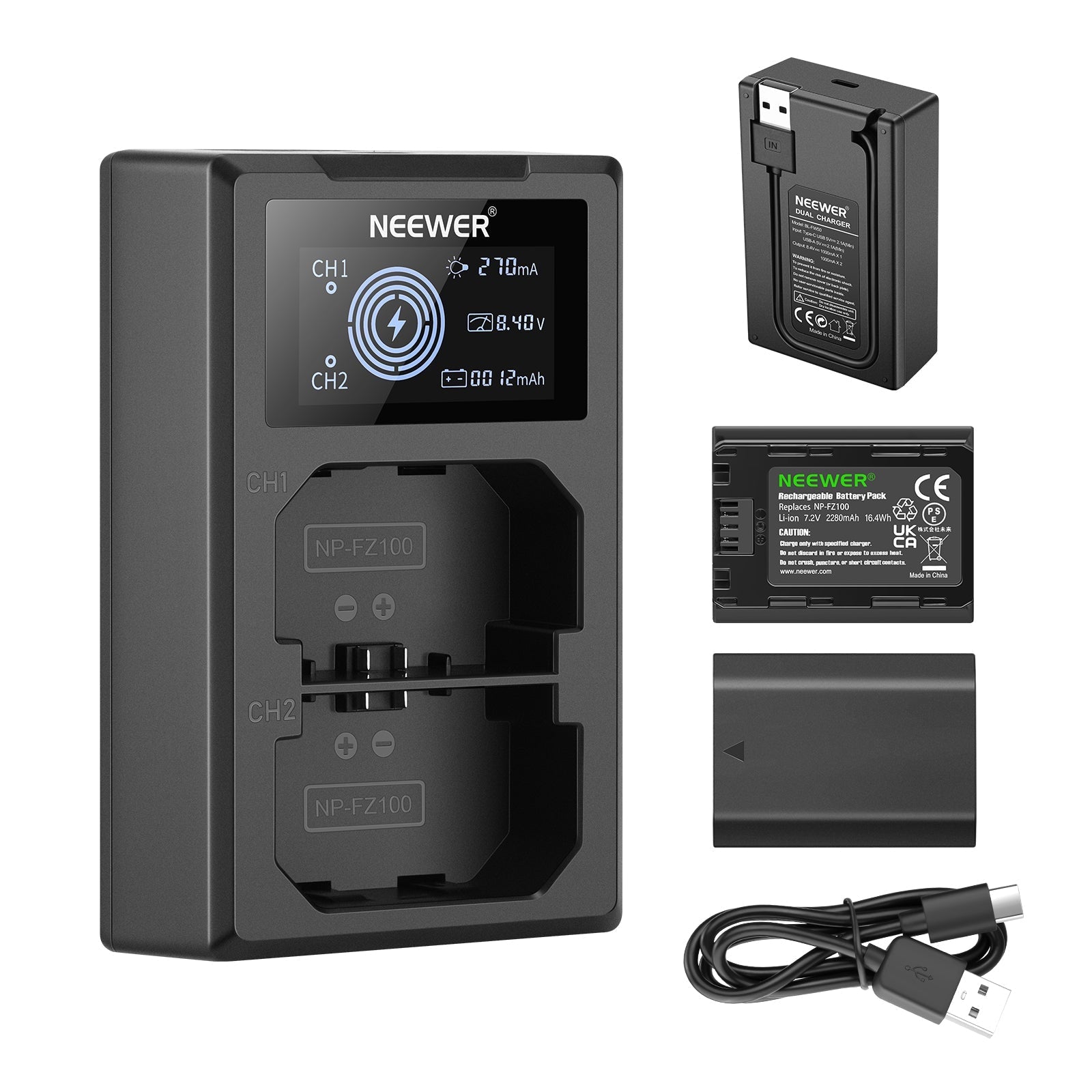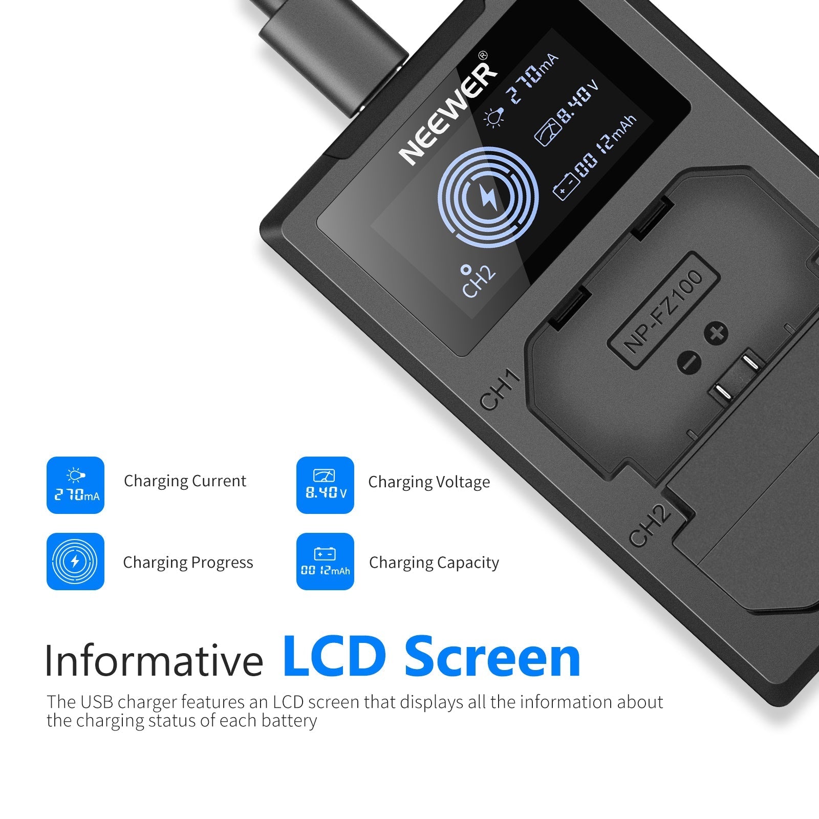 NEEWER Juego de Cargador de Batería de Repuesto Sony NP-FZ100 Actualizado