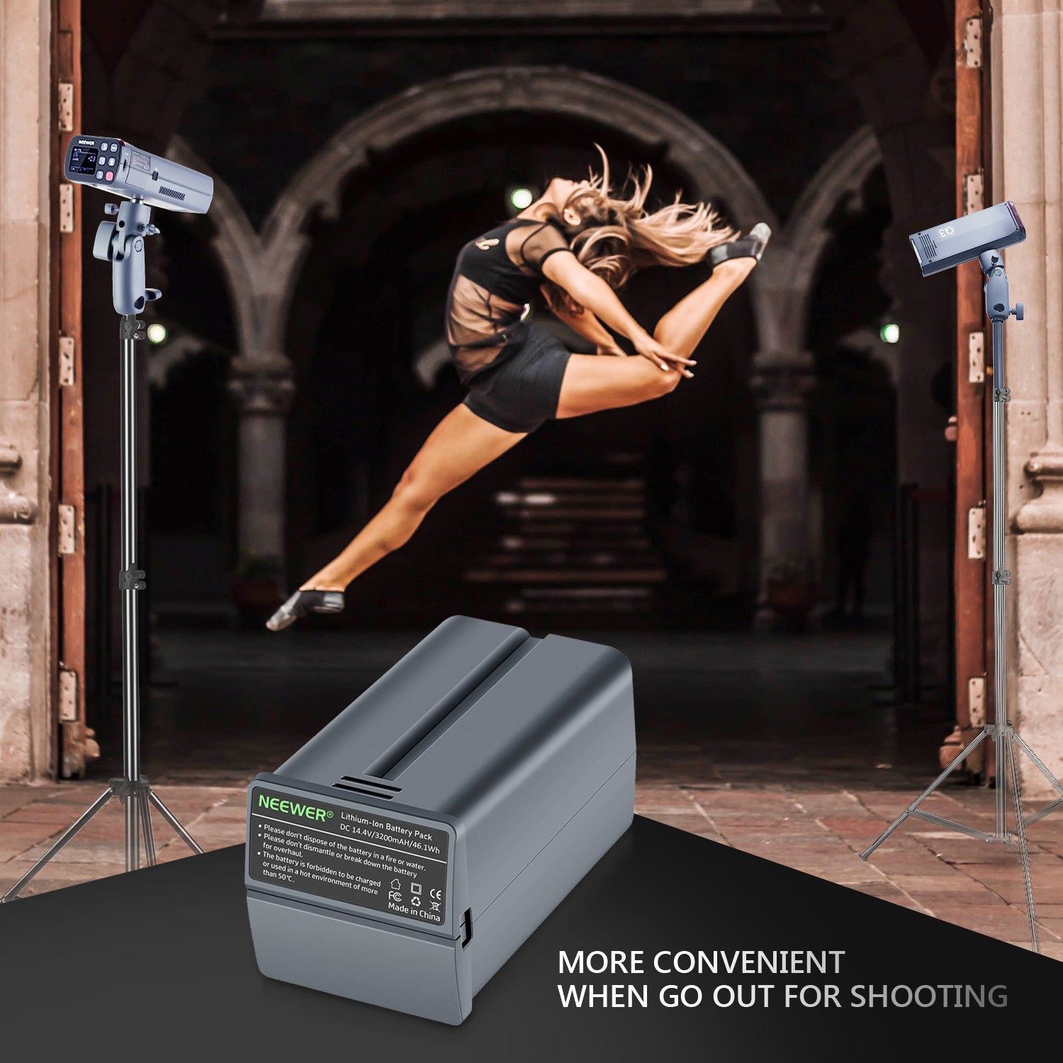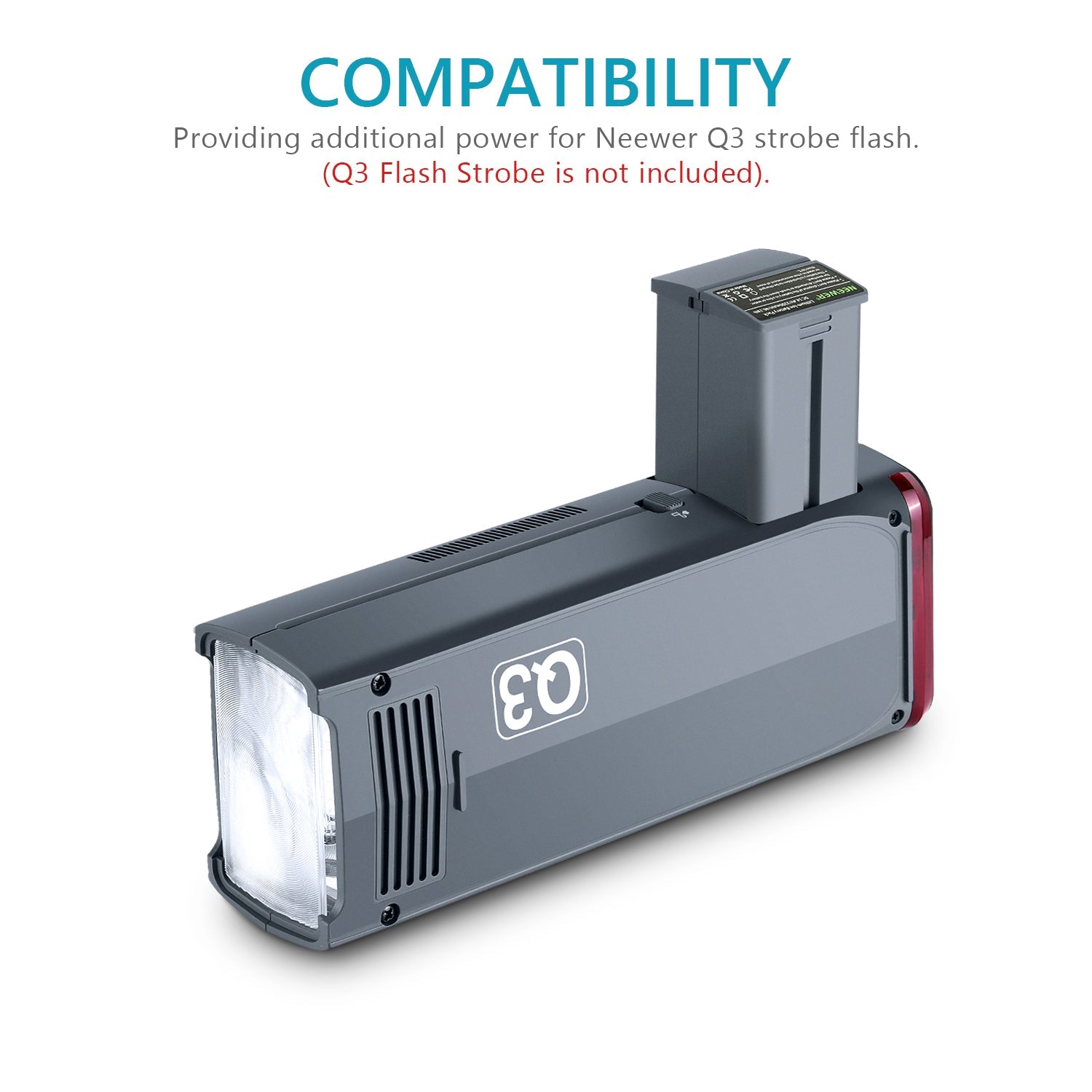- La batería de litio recargable de 14,4 V/3200 mAh con una larga vida útil ofrece 500 flashes de potencia completa para el flash estroboscópico Neewer Q3,