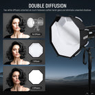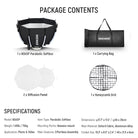 - Softbox octagonal profesional : este softbox octagonal de 35,4''/90 cm cuenta con un revestimiento interno plateado suave y uniforme sobre una tela de nailon engrosada que amplía, difunde y suaviza la luz al tiempo que conserva la reproducción de colores realistas. Incluye dos capas de difusores de luz y una rejilla en forma de panal para una salida óptima