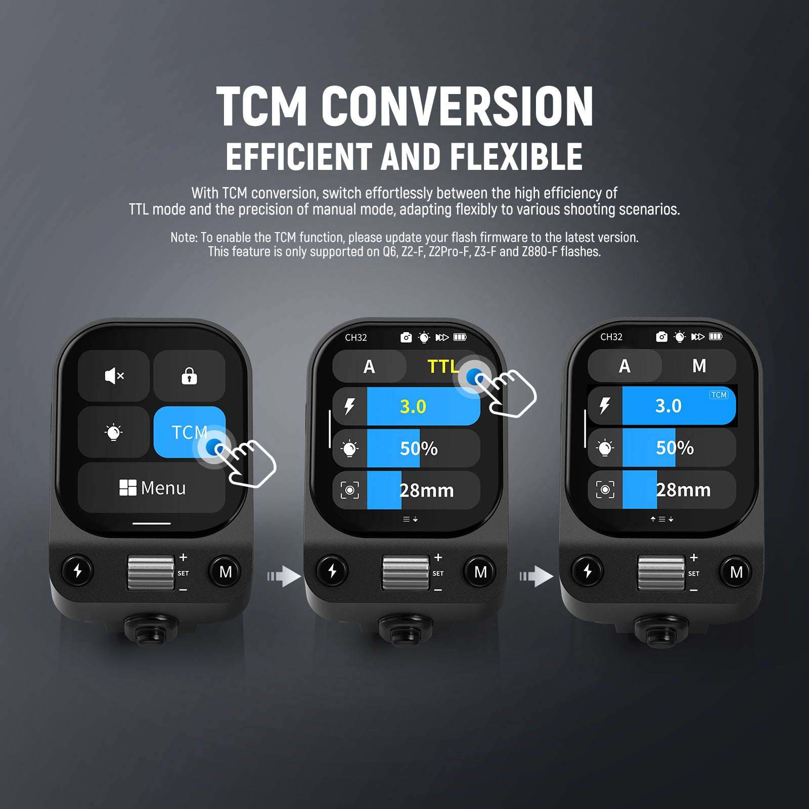 - Multiple Flash Modes- With TTL, M/Manual and Strobe Modes, the flash trigger supports ±3 EV exposure compensation, while the Manual mode offers precise flash output adjustments from 1/128 to 1/1, with the S1/S2 optical slave mode (only available in Manual Mode) for wireless triggering. Also with zoom settings, auto or manual, adjustable from 20mm to 200mm, and supports single point triggering for precise control over your shots