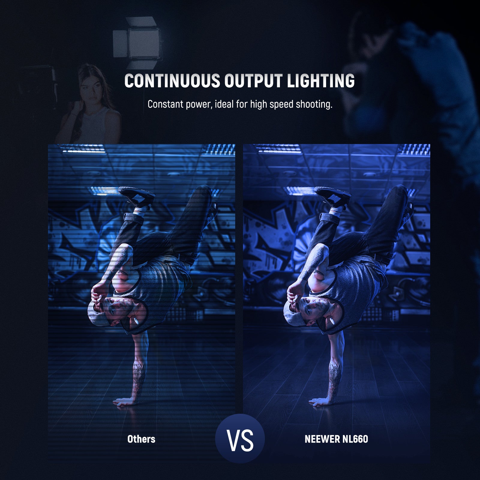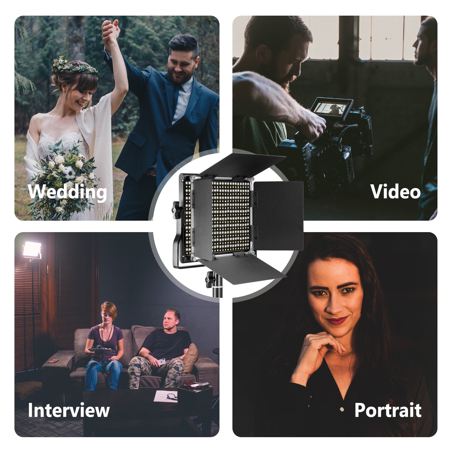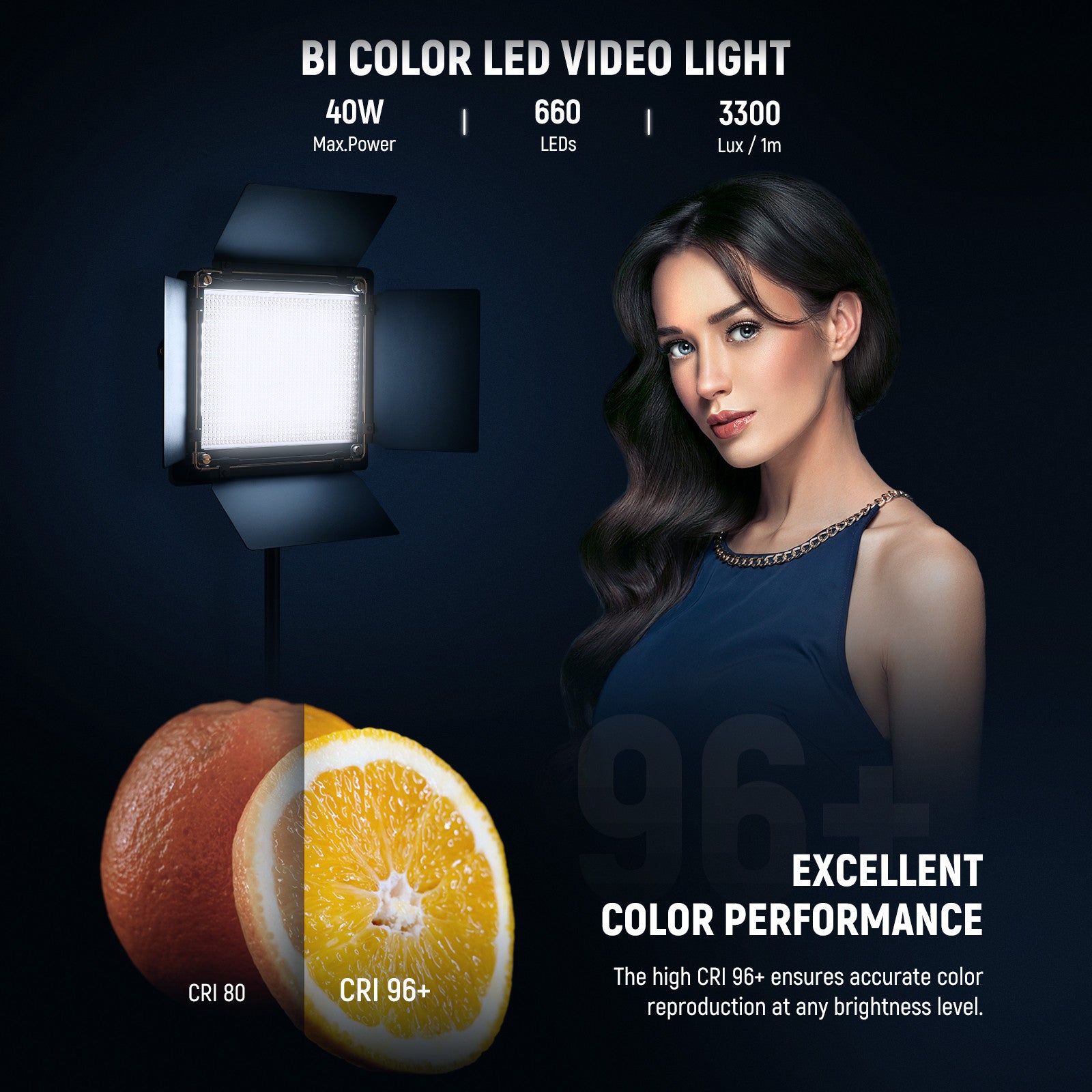 • BOMBILLAS LED 660 - Con 330 bombillas LED blancas y 330 amarillas de larga duración, esta luz ilumina un balance de blancos variable de tungsteno-luz de día de 3200 a 5600K