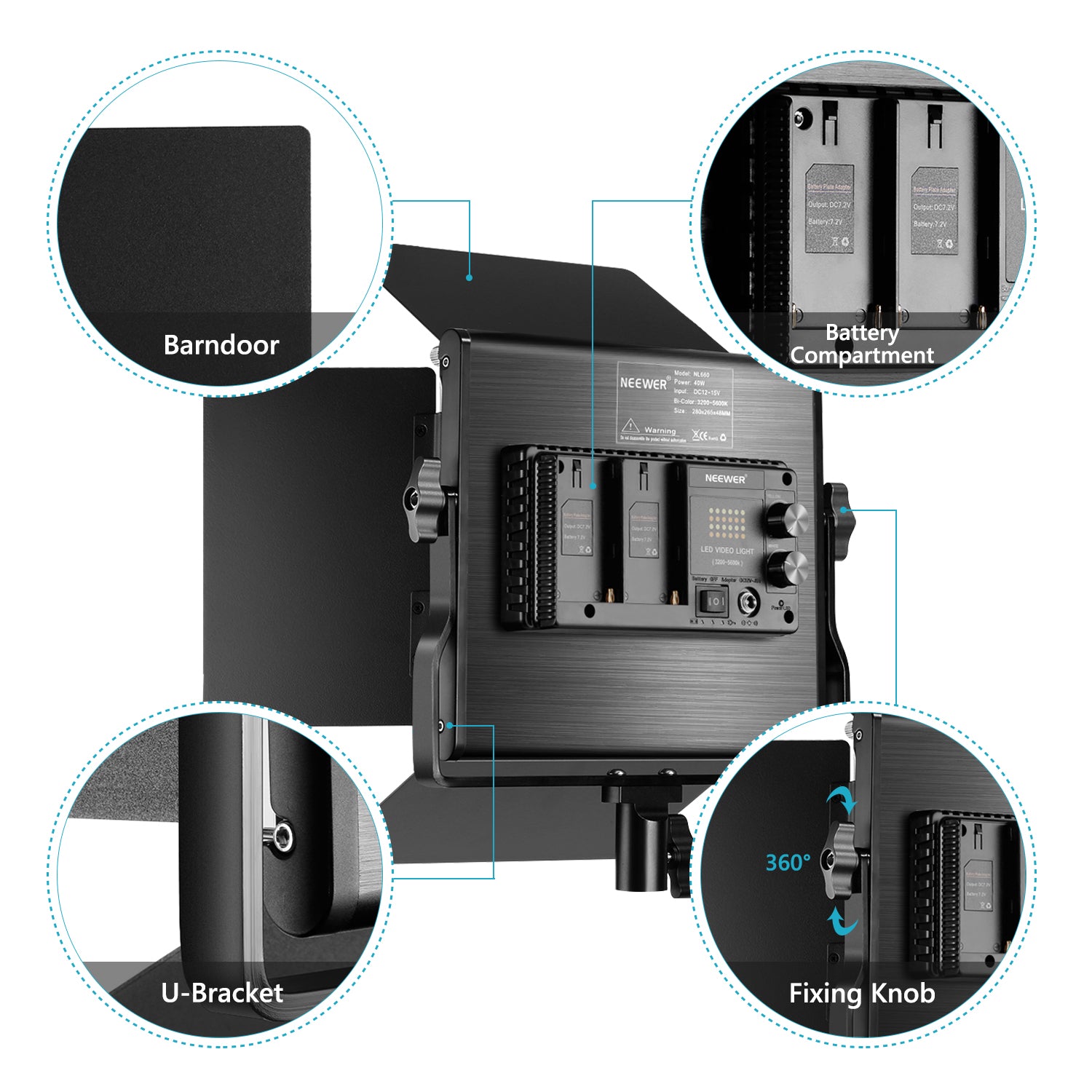• SOPORTE DE MONTAJE EN U : permite a los fotógrafos ajustar el ángulo de iluminación según el entorno de disparo.