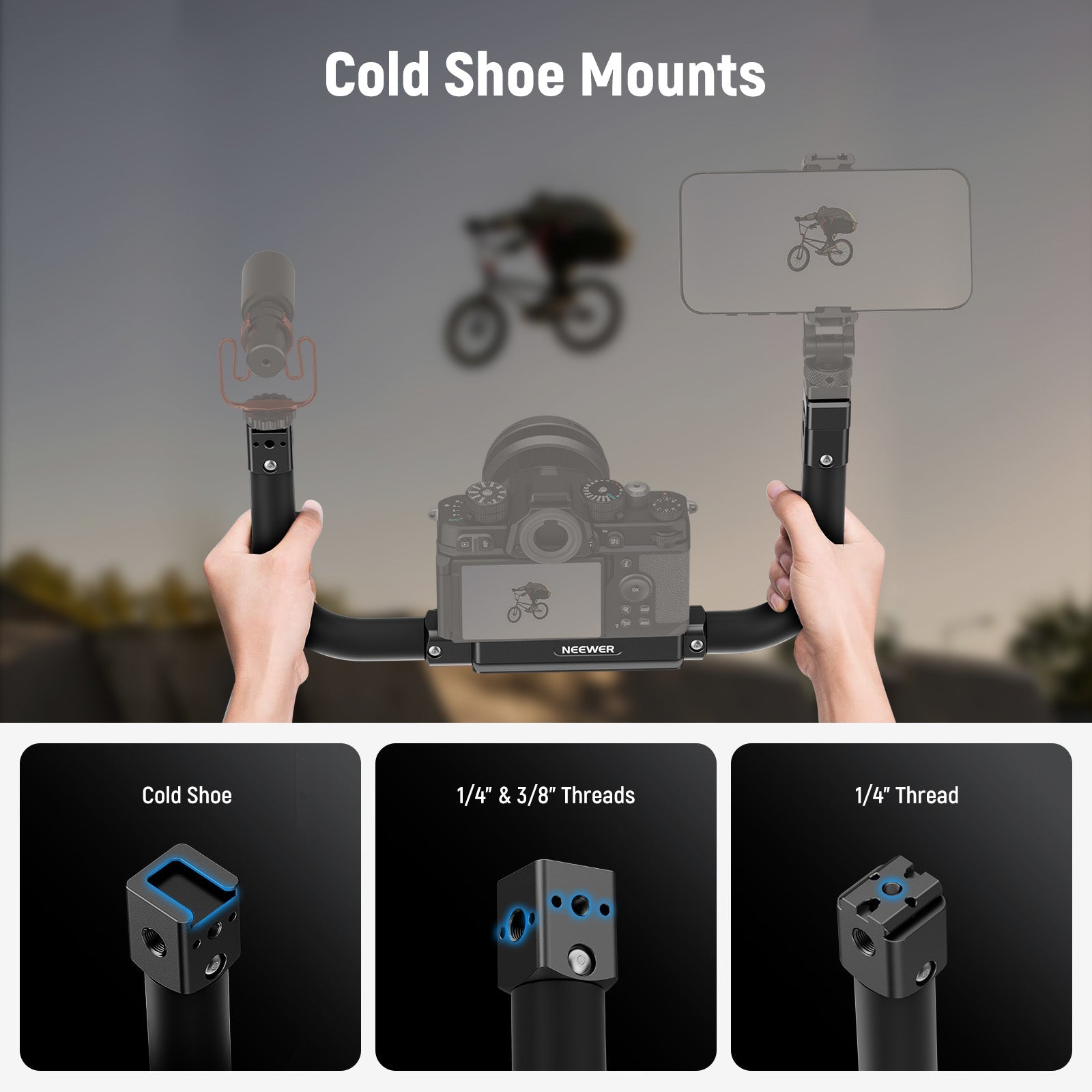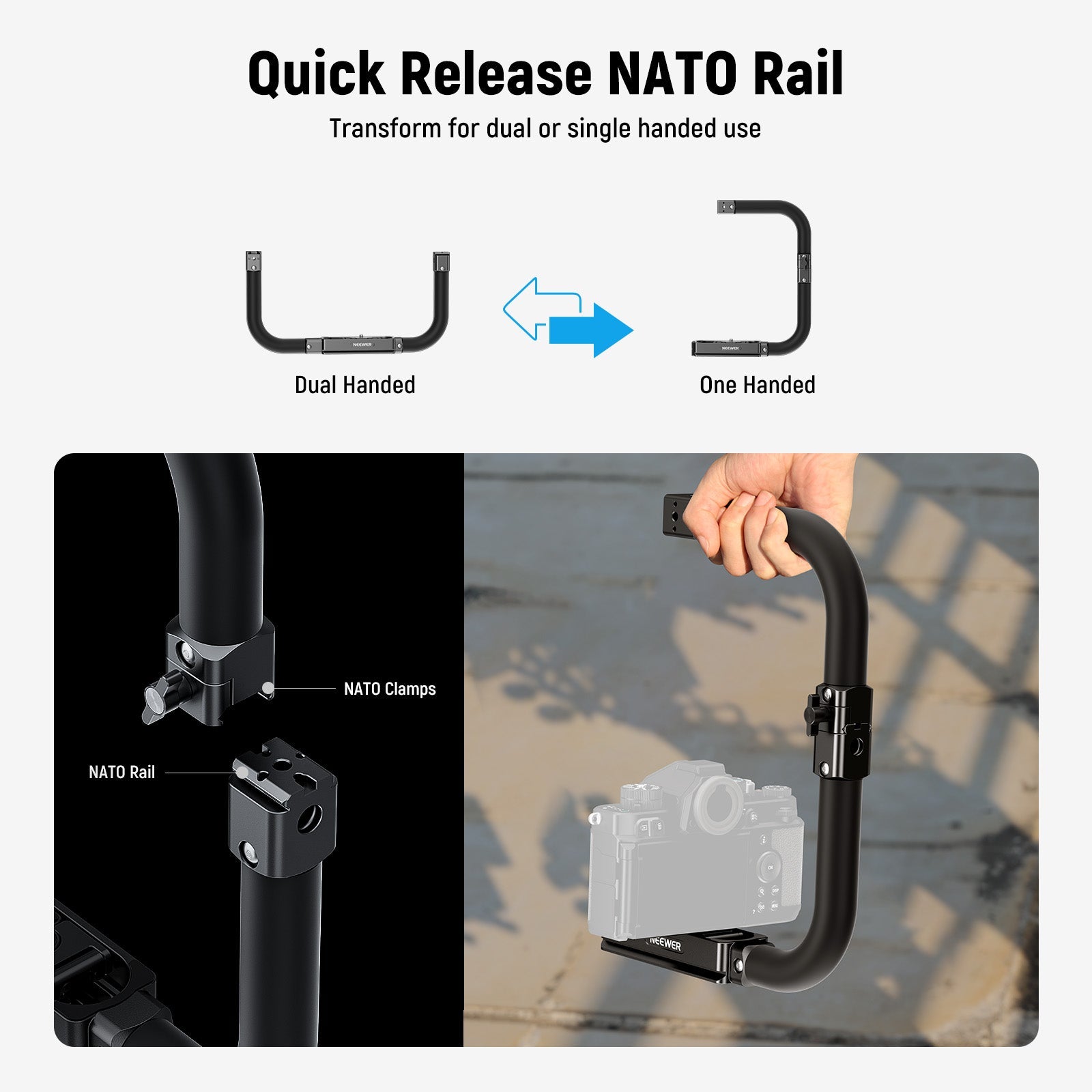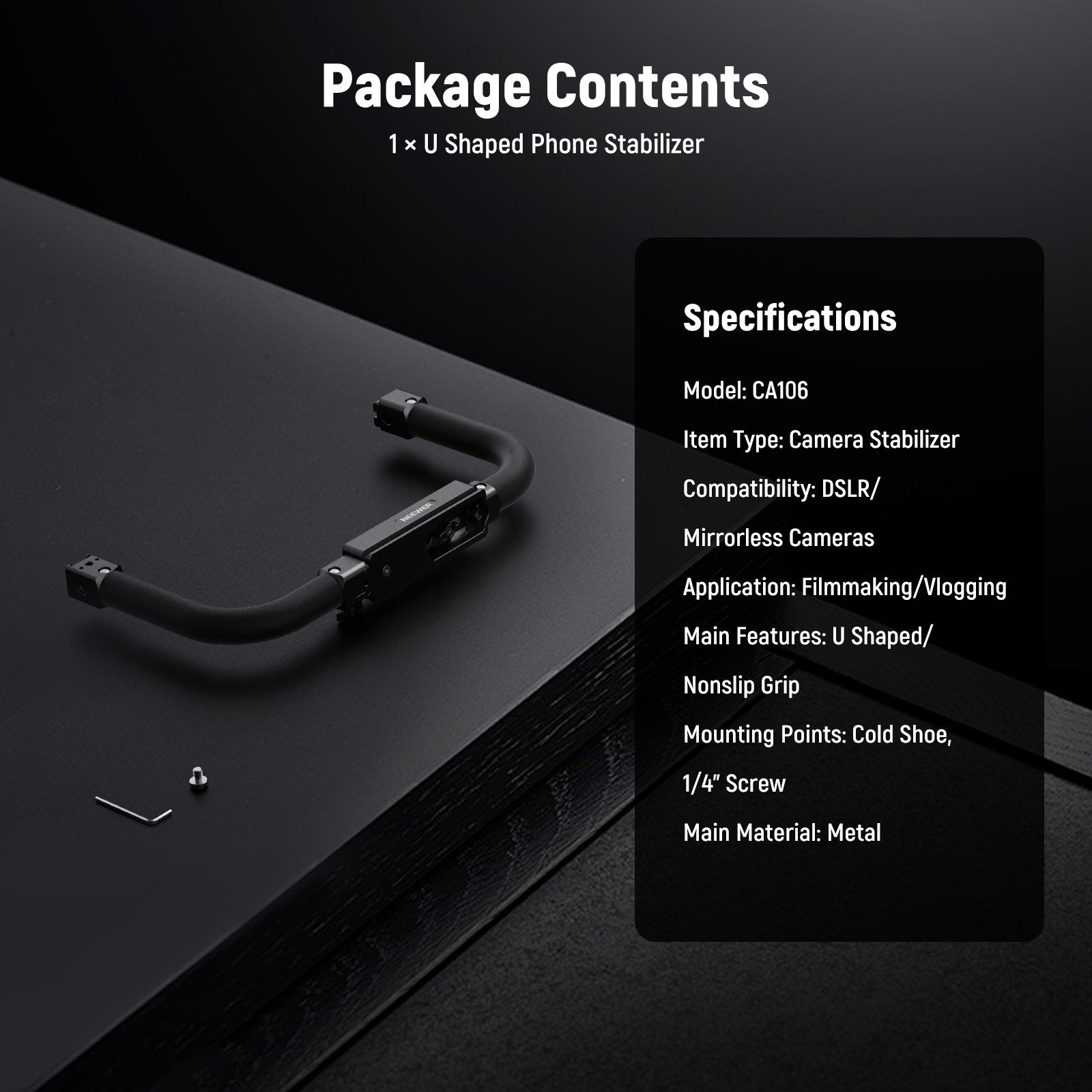 • Empuñaduras ergonómicas en forma de U : recubiertas con espuma suave y antideslizante, las empuñaduras en forma de U le ofrecen un agarre cómodo y firme para tomas manuales estables, como vlogs, realización de películas, transmisión en vivo y más.