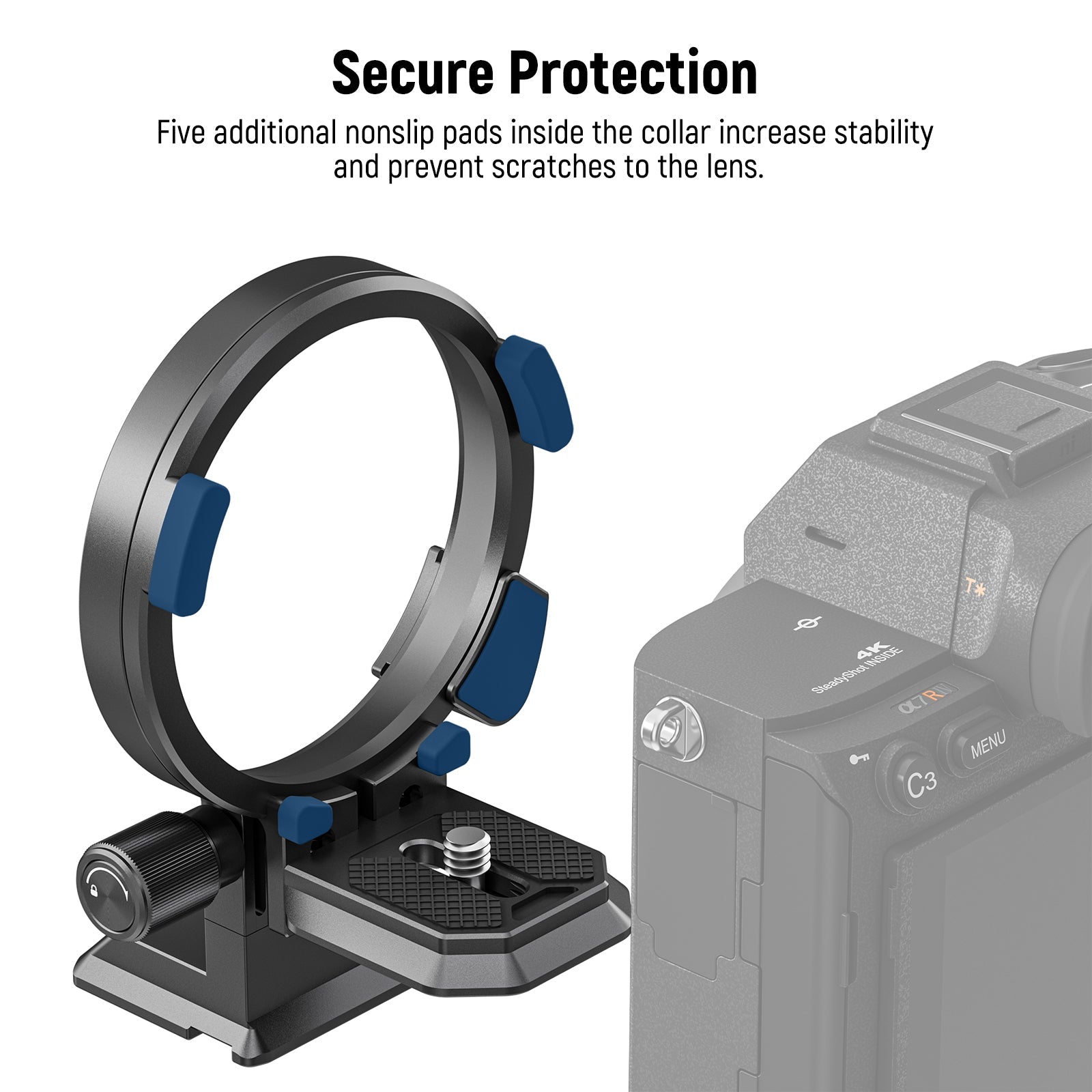 - Bloqueo de seguridad anti-torsión : El collarín del lente sujeta firmemente su cámara sin espejo de fotograma completo a la placa de montaje mediante un tornillo anti-torsión de 1/4", con almohadillas de goma con patrón cruzado para mayor estabilidad. Este soporte vertical para cámara también cuenta con dos pestañas y bordes curvos en el collarín para asegurar el lente. También incluye dos llaves hexagonales en forma de L para ajustar la cámara.