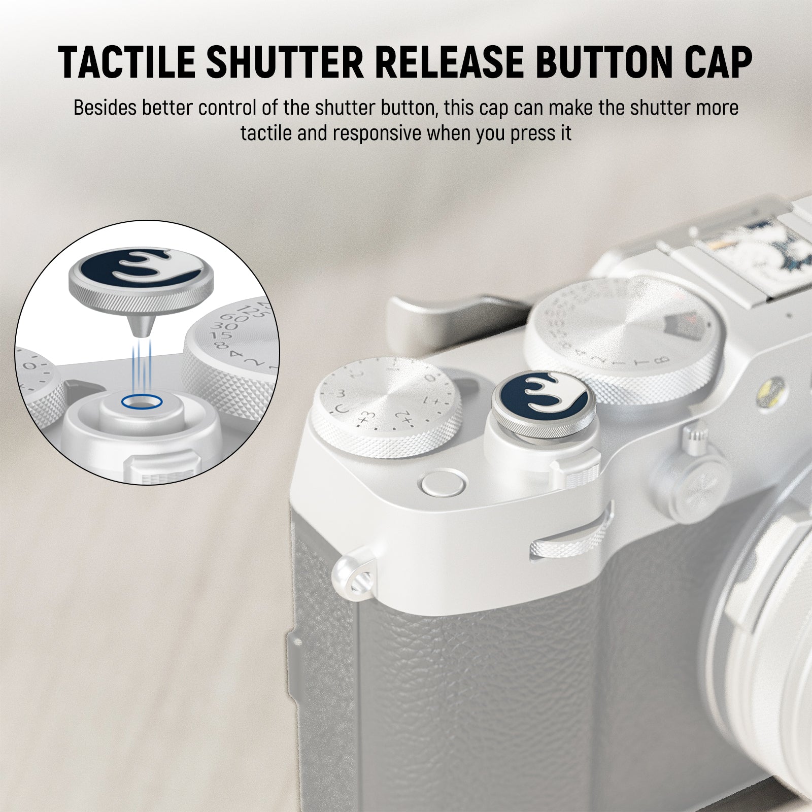 - Tapa del botón de liberación del obturador táctil : además de un mejor control del botón del obturador, esta tapa puede hacer que el obturador sea más táctil y sensible cuando lo presiona.