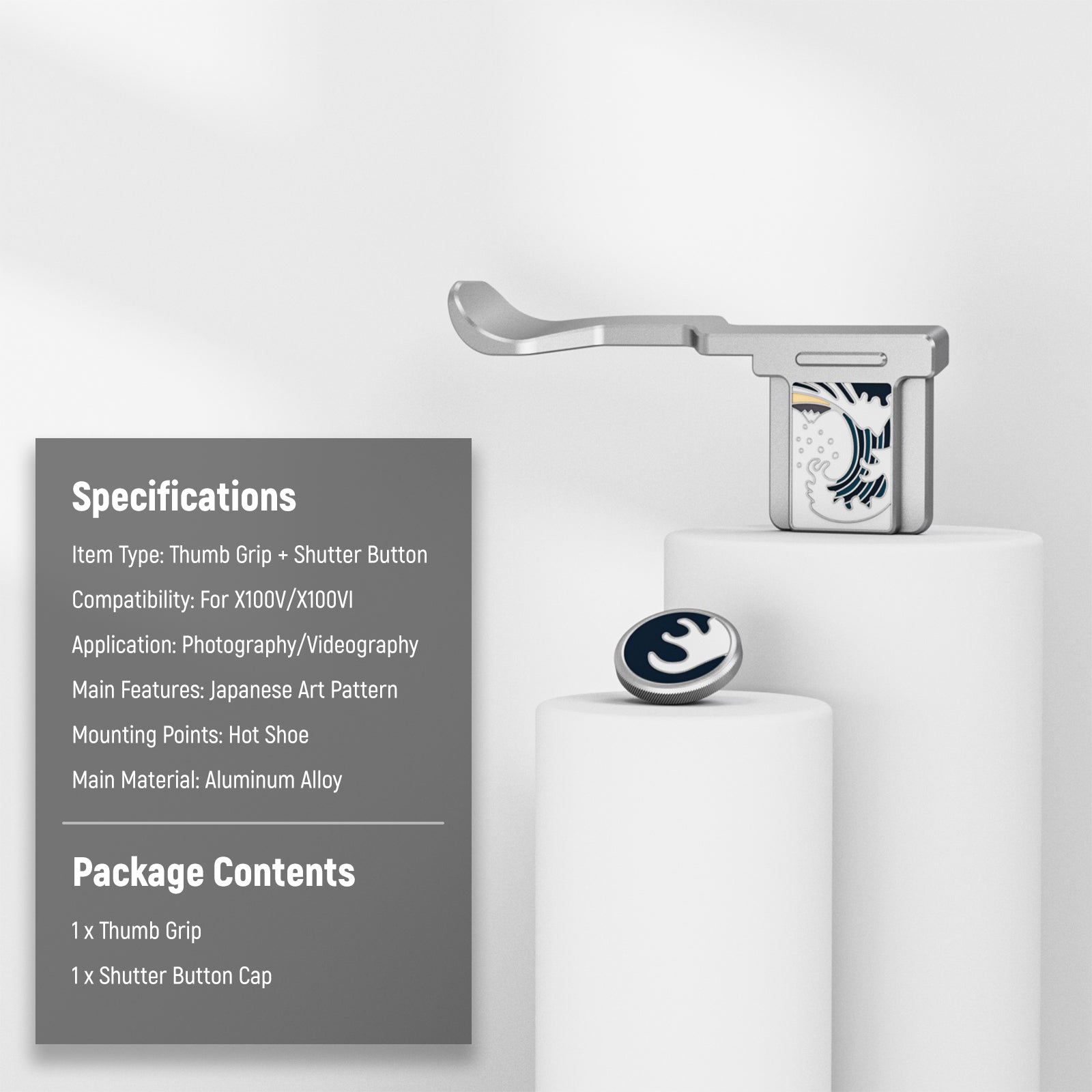 - Compatible con X100V y X100VI : este conjunto de accesorios incluye una empuñadura para el pulgar y una tapa para el botón del obturador, compatible con las cámaras sin espejo Fujifilm X100V y Fuji X100VI