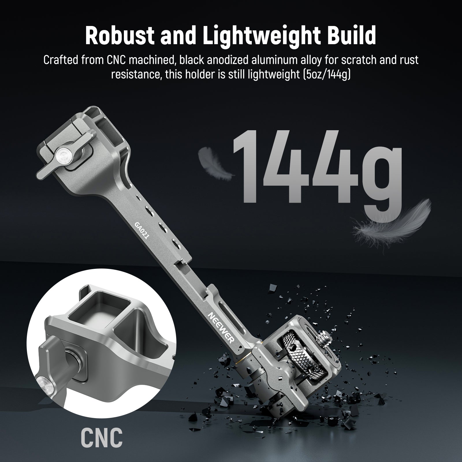 - Construcción robusta y liviana : fabricado con aleación de aluminio anodizado negro mecanizado por CNC para resistencia a rayones y óxido, este soporte sigue siendo liviano (5 oz/144 g), perfecto para creaciones al aire libre en cualquier entorno complejo.
