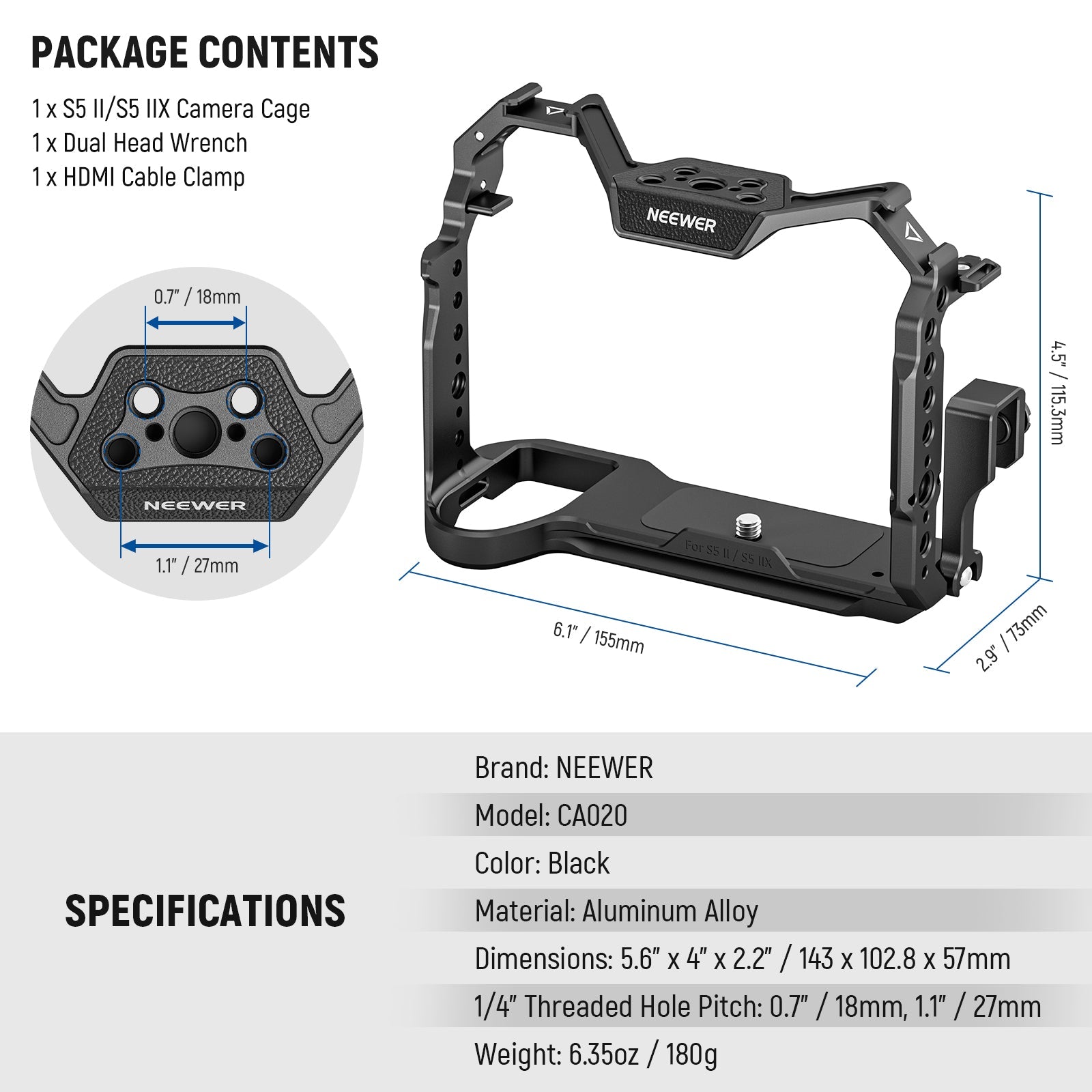 NEEWER CA020/CA056 Jaula de cámara para Panasonic S5 II / S5 IIX / G9 II