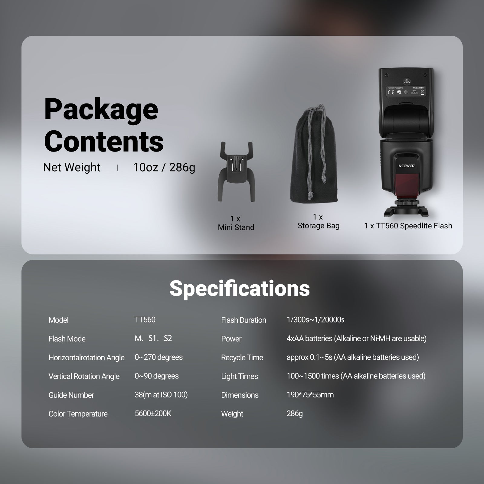 - 1 x nuevo flash Speedlite TT560