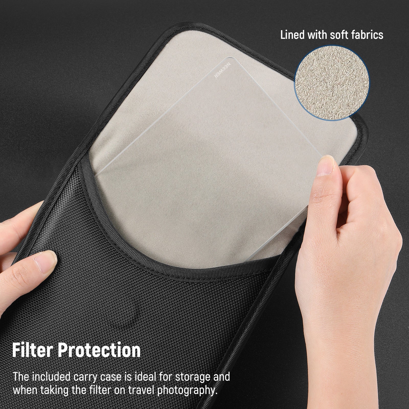 • Amplia compatibilidad : a diferencia del filtro circular tradicional para un tamaño de lente particular, este filtro cuadrado no se atornilla directamente a la lente, por lo que se puede usar para lentes de varias longitudes focales cuando se monta en una caja mate o en un marco de filtro.